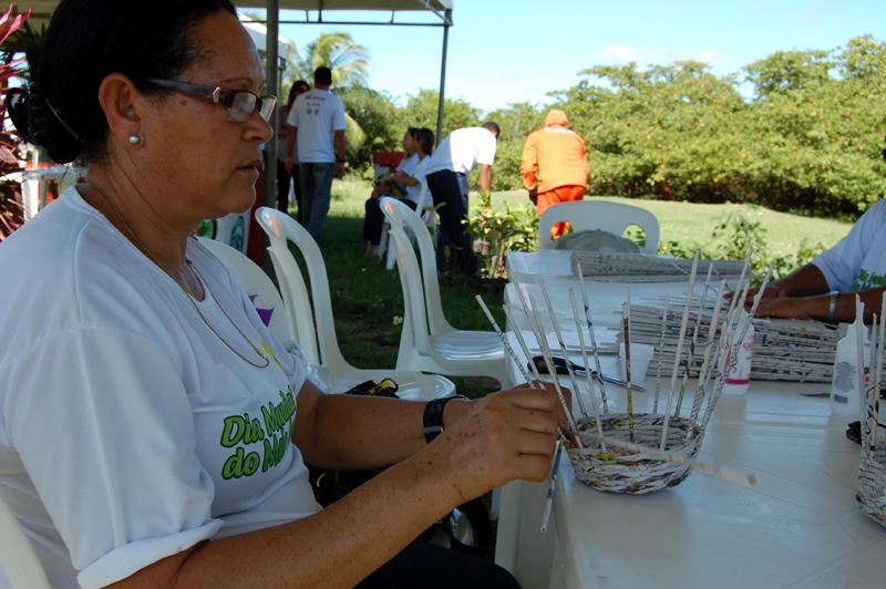 Outra atividade promovida na av. Desembargador Antônio Góes para comemorar o Dia do Meio Ambiente foi a Oficina de Papel desenvolvida pela Emsurb. "Nosso trabalho é transformar jornais e revistas que são doados em algum material útil, resistente e com durabilidade. Nós fazemos bolsas, cintos, vasos, cestos, bandejas, diferentes utensílios de decoração. A gente vai a colégios, instituições, centros de apoio, ou a qualquer lugar que nos convide para apresentar nossas atividades multiplicadoras", relatou a servidora Elizabeth de Sá, que há 10 anos está integrada à Oficina de Papel e ainda assim é o membro mais recente dentre a equipe ligada ao projeto reciclável.