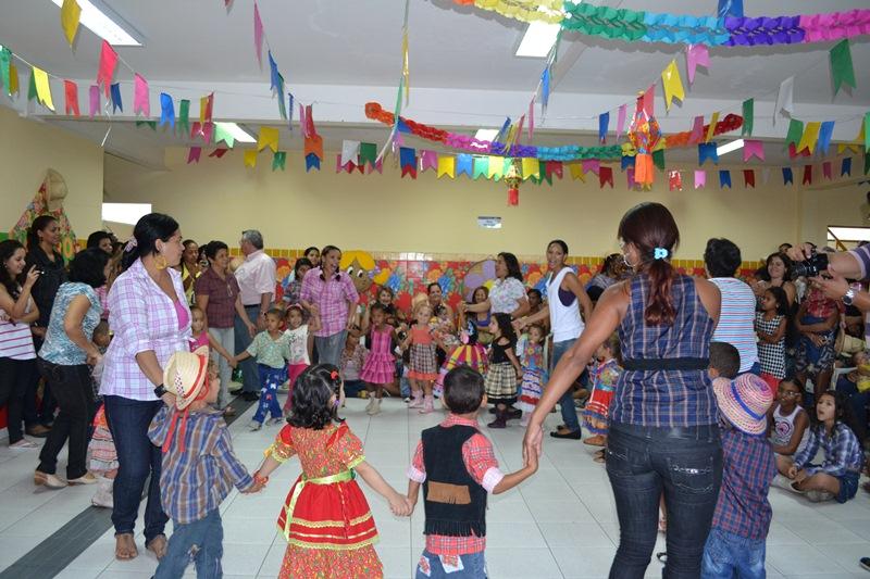 Ao som do autêntico forró, quadrilhas e muita animação, as unidades de ensino se transformam em um verdadeiro arraial. A decoração das escolas ganha mais cores, bandeirolas e balões. O cardápio da merenda escolar conta com comidas típicas como: mungunzá, arroz doce, canjica, entre outras iguarias. Também ocorrem as escolhas do casal de noivos, rei e rainha do milho, padre e os demais integrantes da quadrilha junina. Antecedência necessária para que tudo transcorra da melhor forma possível.