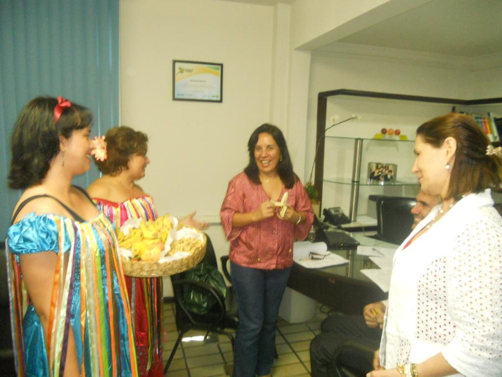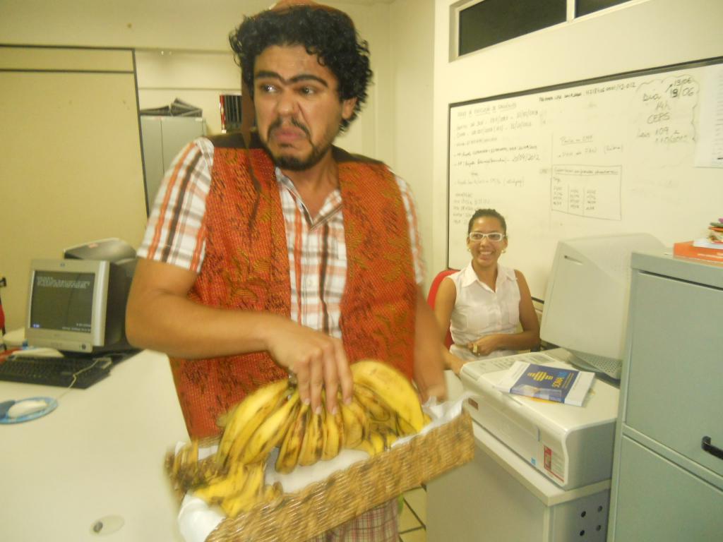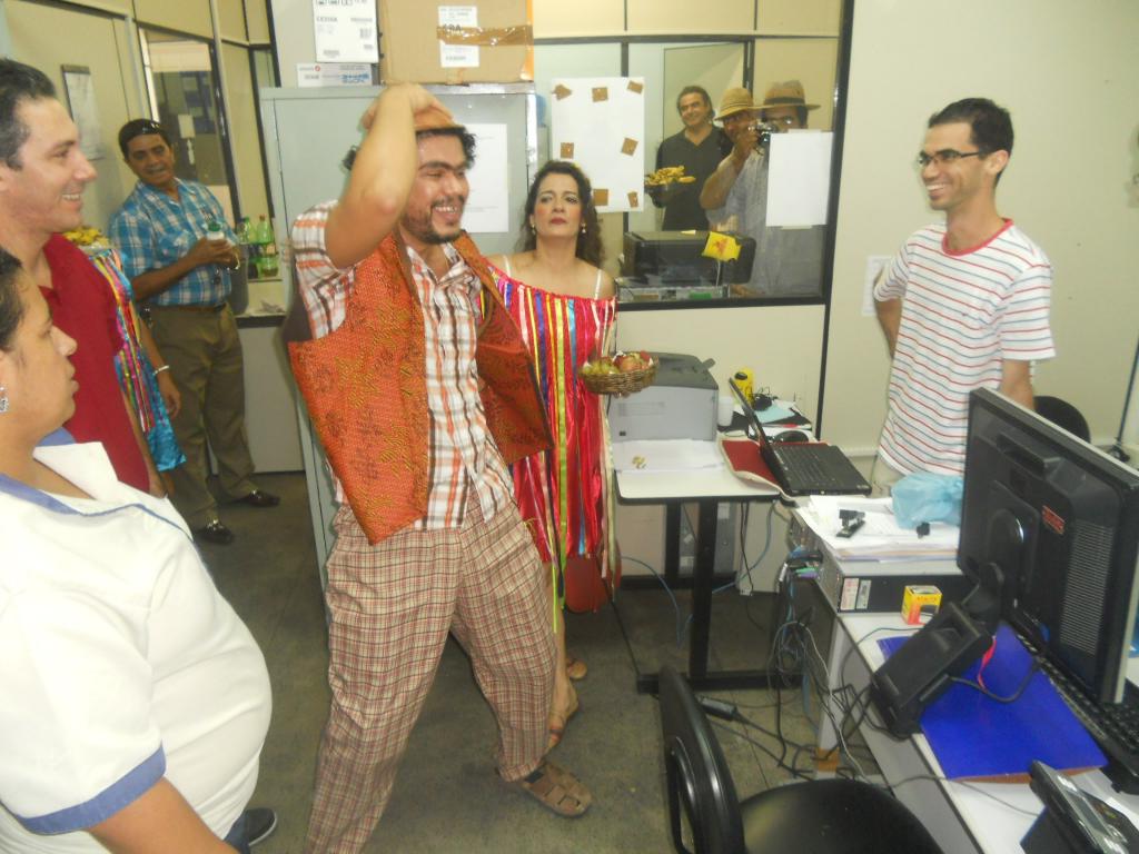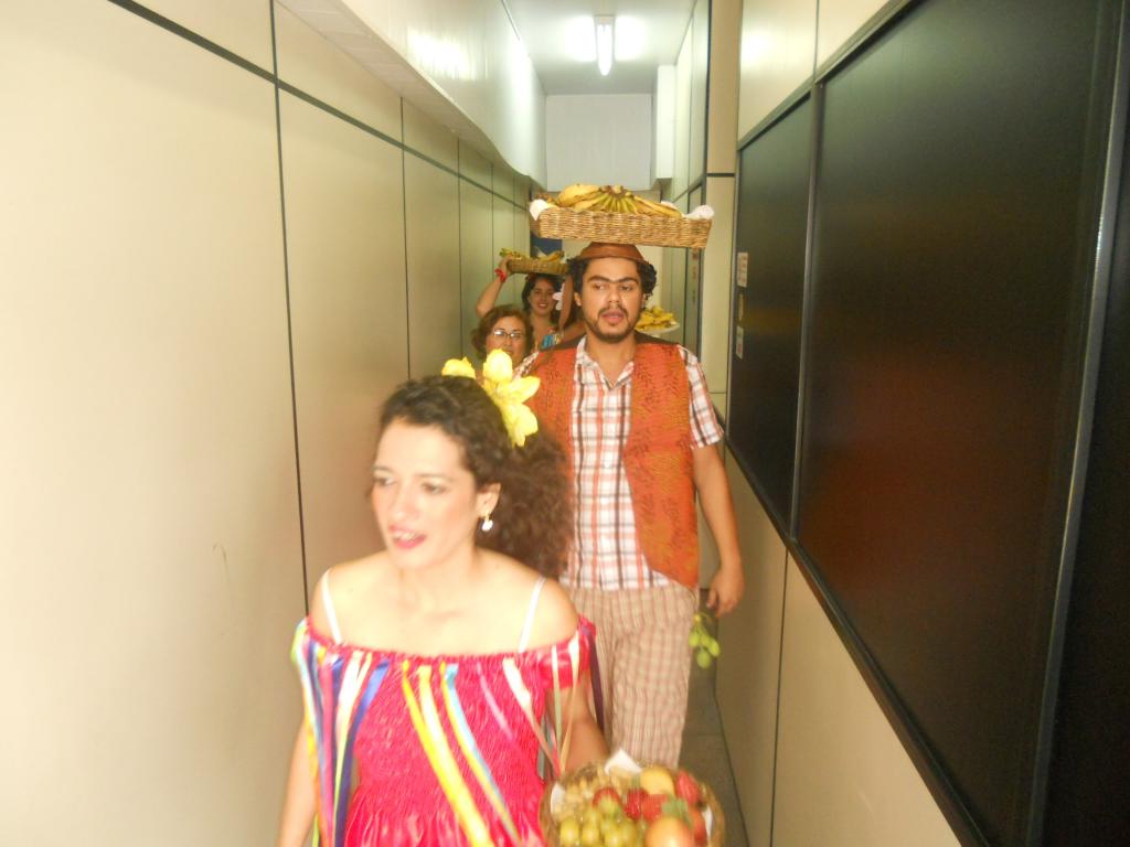 Inspirados no método Paulo Freire de educação popular, os membros do Nuprin percorreram a repartição travestidos de "tabaréu" e de grupo folclórico regional. Para compor a encenação, eles ofertaram frutas dispostas em cestas de cipó. Os gestores e servidores se divertiram com o teatro e aceitaram as frutas.