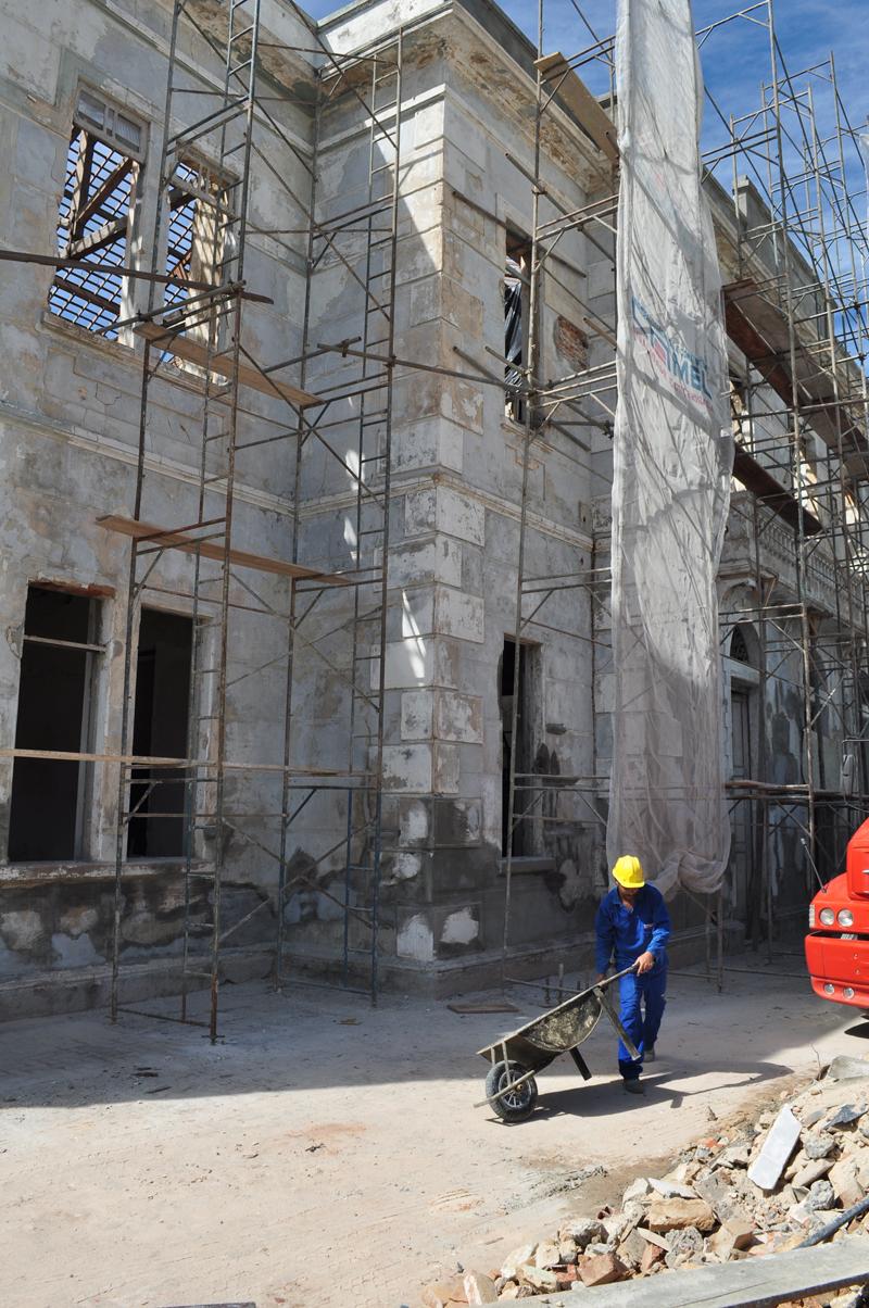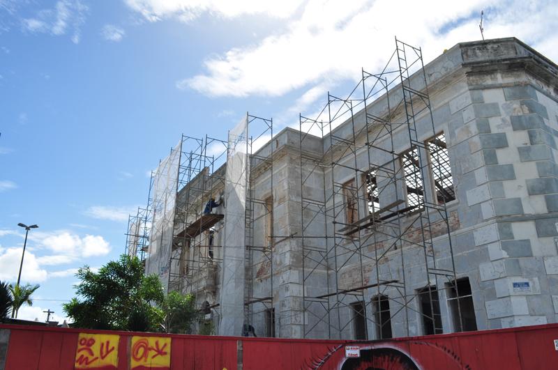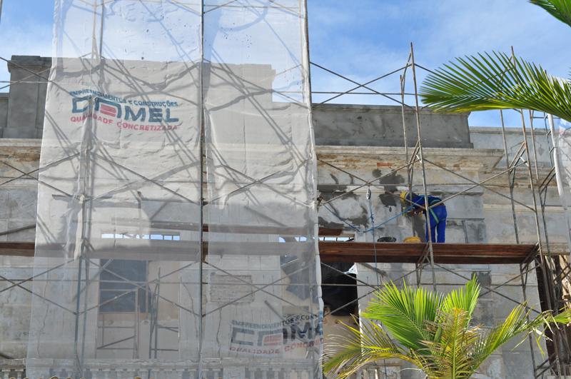 Estão trabalhando nas obras cerca de 45 profissionais, entre empreiteiros e restauradores. Este mês foram removidos os forros, telhados, também foi retirada a antiga pintura, demolidos os banheiros. Está sendo iniciada a reforma da fachada e a parte interna está sendo rebocada. O prazo para execução dos serviços é de 360 dias.