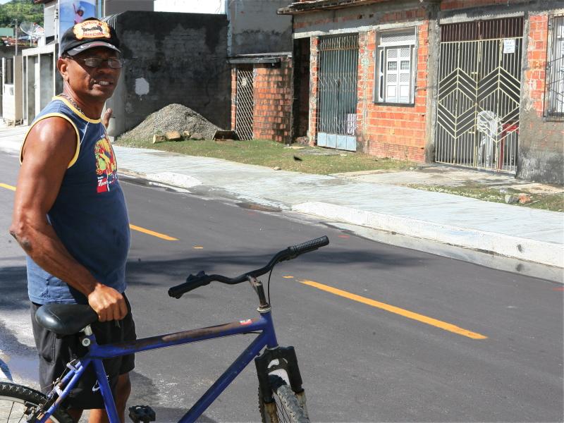 "Antes era horrível. Não se podia lavar o carro que bastava sair já sujava. Agora está ótimo, foi um serviço de primeira qualidade! Além da pavimentação e drenagem, ainda foi melhorada a iluminação, antes a rua era muito escura", afirma José Cardoso dos Santos, morador da rua Jackson de Figueiredo. "Não tem nem comparação de quando cheguei para agora, dá até pra cuidar do jardim", conta José, que há cinco anos mora no loteamento.
