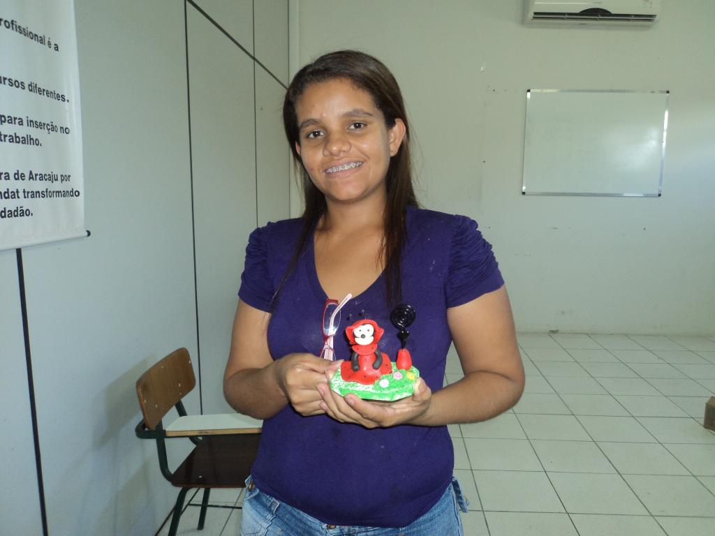A aluna Viviane Maria da Silva, 24 anos, já havia feito o curso de biscuit e retornou para se aperfeiçoar ainda mais. “Eu já faço e vendo biscuit. Estou de volta para aprender outras técnicas, me aprimorar e investir mais ainda e aumentar a minha renda”, confirma.