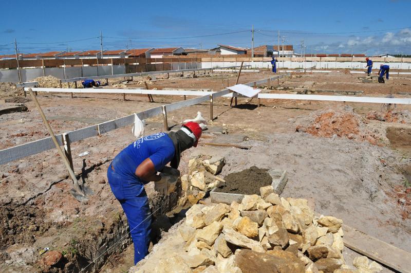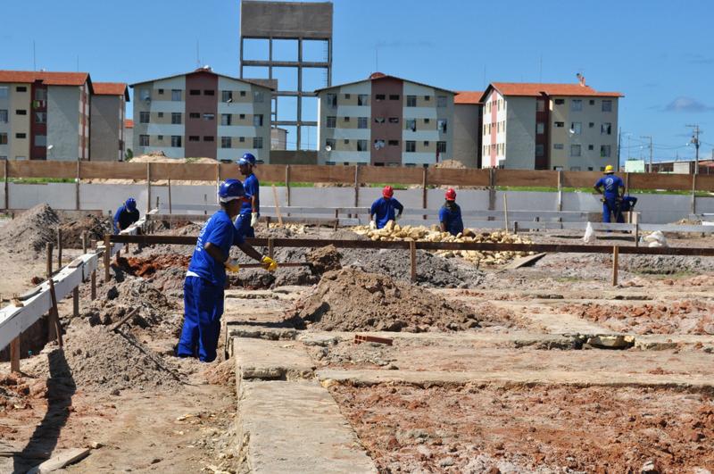 Cerca de 40 profissionais trabalham de segunda a sexta-feira realizando diverso serviços, a exemplo de carpintaria, construindo fôrmas para concretos, escavações de valas para a fundação (alvenaria de pedra); ferragens para executar as estruturas de concreto e na locação e marcação do local onde funcionará a futura quadra.