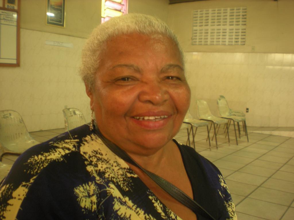 O cabo de turma da construção civil, Maria José Santos, de 62 anos, moradora do bairro Ponto Novo, participa do Bolsa Família desde o início. Bem humorada, ela faz questão de opinar durante o debate.