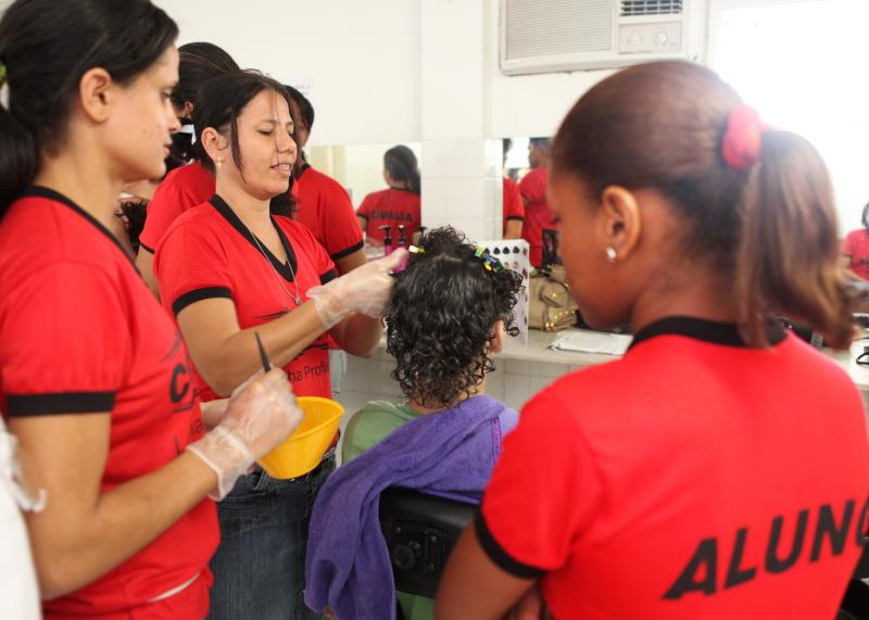 No curso de cabeleireiro, durante pouco mais de um mês, quem participa tem aulas de corte, escova, alisamento, luzes, utilizando produtos profissionais que qualificam ainda mais o lado profissional.
