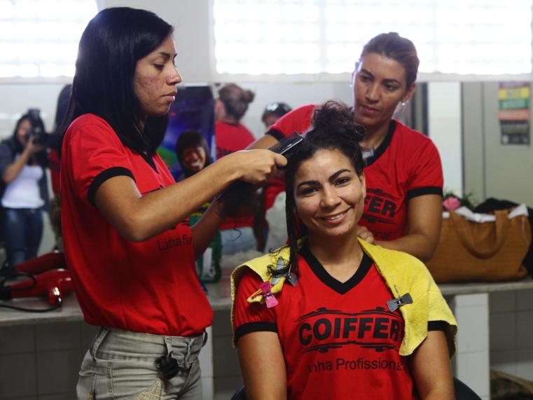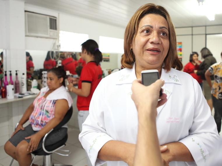 “A maioria das alunas que sai daqui, monta o próprio salão. Saber disso é muito gratificante para mim”, afirma Maria José, a professora do curso.