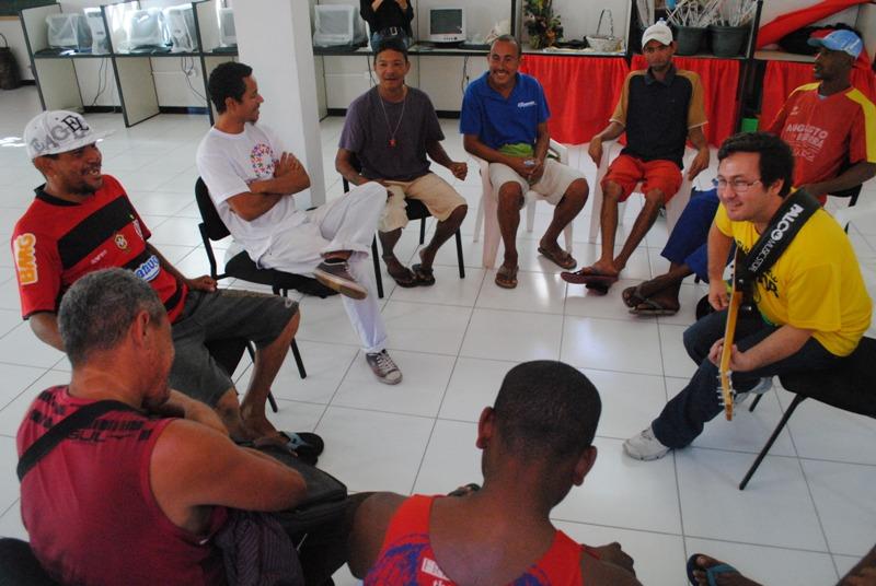 O Centro de Referência para População em Situação de Rua (Centro Pop) realizou na manhã desta quinta-feira, a palestra "Saúde preventiva e do homem", ministrada pelo médico da família Edney Pacheco Vasconcelos, pós-graduado em Apoiador da Política Nacional de Humanização em Saúde. A palestra foi dirigida aos usuários, que participaram ativamente das discussões. O médico utilizou um método interativo para iniciar a palestra. Dedilhando um violão, levou os participantes a refletirem sobre o conceito atual de saúde. Enquanto o palestrante entoava o refrão "saúde é....", os usuários do Centro Pop completavam a frase com expressões que refletiam a suas compreensões sobre o tema, a exemplo de bem estar... tudo...é dar um abraço na mãe.... e etc. O objetivo da palestra, segundo informou o coordenador do Centro Pop, Edilberto Souza, foi o mostrar aos usuários da unidade que saúde é um direito adquirido e estabelecido na Constituição Federal, bem como o de atender a demanda deles, que costumam solicitar atividades relacionadas ao tema saúde. "Palestras como esta sempre agregam novos conhecimentos ao nosso público e os ajudam a viver melhor, ainda que continuem em situação de rua", declarou o coordenador do Centro Pop, informando que o evento faz parte de uma série de atividades que vêm sendo realizadas na unidade, com o objetivo de resgatar a cidadania das pessoas em situação de rua. O palestrante falou sobre algumas doenças, como hipertensão, DSTs, diabetes a pedido dos usuários, mas focou a fala no tema saúde. "Não vamos falar sobre doenças. Estamos aqui para conversar sobre saúde e é preciso que vocês compreendam que saúde é luta, saúde é conquista", enfatizou. Ele informou os participantes sobre novos serviços de saúde voltados especificamente para as pessoas em situação de rua e para o homem. "No Brasil temos a Política Nacional de Saúde para a População de Rua desde 2005 e a Política Pública de Saúde do Homem desde 2009. Em Belo Horizonte, São Paulo, Porto Alegre e Recife já está implantado o Programa de Saúde da Família para pessoas em situação de rua", informou eles aos usuários, lembrando que é preciso que eles comecem a cuidar da saúde preventivamente. Segundo o médico, 90% das pessoas em situação de rua só procuram o serviço de saúde quando estão sentindo alguma coisa. "É uma cultura presente ainda em toda a população, mas precisamos mudar isso", decretou o palestrante, acrescentando que acrescenta música e canto às suas palestras, que em geral acontecem como em uma roda de conversa, por entender que assim a pessoa aprende mais facilmente e fixa melhor as informações.