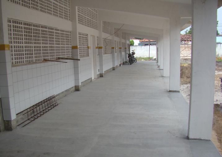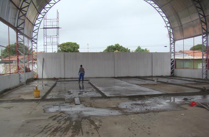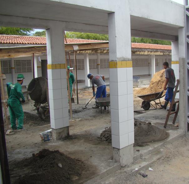 Cerca de 30 profissionais trabalham diariamente para garantir que o andamento obra siga o ritmo de trabalho estipulado no cronograma inicialmente estabelecido. Está em fase conclusiva o piso de resistência de todas as salas e da quadra de esportes. As instalações elétrica e hidráulica também já foram concluídas, bem como foram postas as portas e os forros da cobertura. Ainda essa semana será iniciada a pintura do prédio