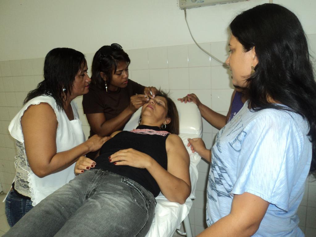 Nas aulas, as alunas estão aprendendo como atender o cliente, higiene das partes do corpo onde são realizadas a depilação e as técnicas da depilação.