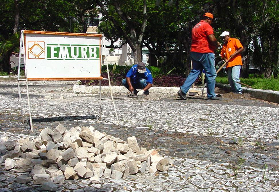 A Empresa Municipal de Obras e Urbanização (Emurb) vem realizando serviços de recuperação das pedras portuguesas na Praça Camerino, localizada no Centro da Capital. O trabalho consiste em colocar pedras novas e rejuntar as que estão soltas. Nas praças praças Fausto Cardoso e Almirante Barroso a colocação já foi concluída. Segundo José Cícero dos Santos, técnico da Emurb responsável pela recuperação, o trabalho é lento, pois é preciso formar os diagramas já existentes. Primeiro varremos o local para que possamos cavar a área danificada e só então colocar as pedras em seu devido lugar, formando o desenho anterior, explica. De acordo com o presidente da Emurb, Valmor Bezerra, a recuperação na praça Camerino está sendo finalizada, recuperando toda extensão do piso. É preciso estar sempre realizando a manutenção destes locais para garantir a segurança e conforto das pessoas que transitam nas praças de Aracaju, afirma o presidente. Ele ressalta ainda que está sendo desenvolvido, a pedido do prefeito Edvaldo Nogueira, um projeto de reurbanização das praças. Está sendo feita uma análise sobre esta questão e, após aprovação do prefeito, os planos poderão ser colocados em prática, comenta Valmor. Revitalização do Centro O trabalho de revitalização não se resume apenas a recuperação das praças, mas de todo o Centro da capital. De acordo com o Projeto Técnico de Cooperação em elaboração e que envolve a Prefeitura de Aracaju e o governo francês, o Centro vai ser modificado não só em aspecto físico, mas econômico, cultural e social. O projeto prevê a preservação e conservação do patrimônio histórico e do Meio Ambiente natural, além de ajudar no fortalecimento do comércio, promovendo ainda o resgate da identidade cultural dos aracajuanos.