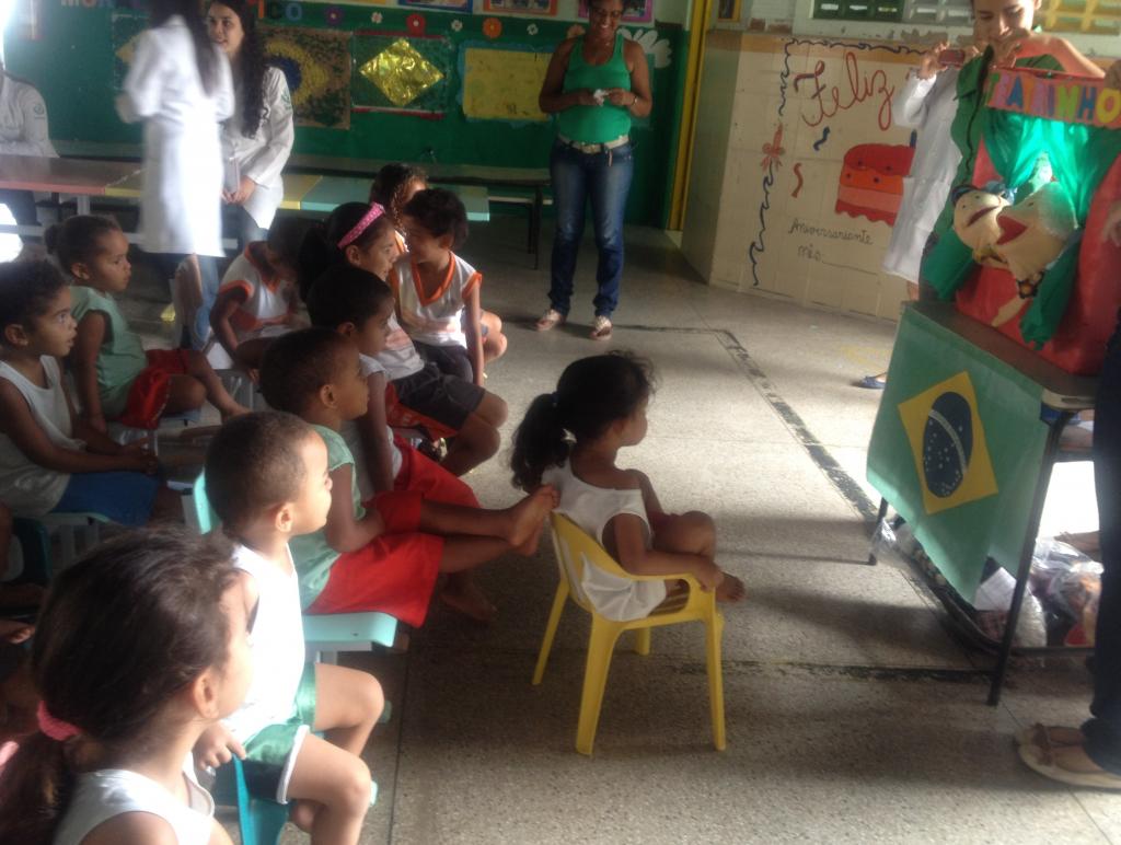 Na manhã desta quinta-feira, 6, teatro de bonecos e atividades lúdicas sobre alimentação saudável envolveram crianças e professores da Escola Municipal de Ensino Infantil (Emei) Berenice Campos, localizada no bairro Porto D’antas. As equipes do Programa Saúde na Escola (PSE), retornaram ao colégio com atividades de educação em saúde e avaliações em saúde bucal e nutrição como a análise Índice de Massa Corporal (IMC) para os mais de 50 meninos e meninas matriculados.