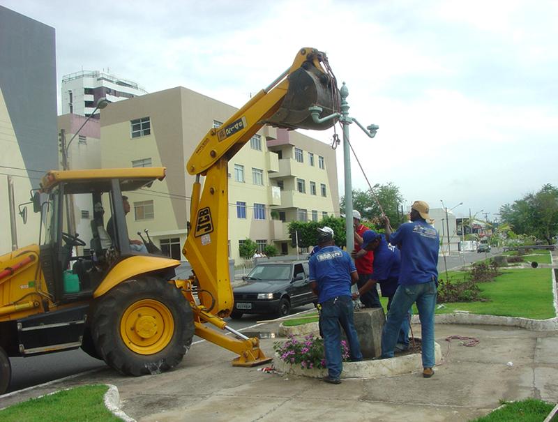 A equipe de manutenção da Empresa Municipal de Obras e Urbanização (Emurb) está trabalhando na recuperação das luminárias instaladas ao longo do canteiro central da avenida Pedro Paes de Azevedo, no bairro 13 de Julho. A iluminação não estava em condições adequadas, uma vez que muitos dos postes se encontravam enferrujados, por conta da maresia, além das cúpulas das luminárias quebradas por ação de vandalismo. Moradora do bairro há 26 anos, a aposentada Angelina Cruz disse que trocou sua caminhada diária na avenida do turno da noite para a manhã para se sentir mais segura. Nesse trecho, depois que os vândalos quebraram as luzes, ficou mais escuro. As pessoas têm reclamado do movimento aqui, no turno da noite, por conta da iluminação deficiente. A Prefeitura não tem culpa, pois as luminárias foram quebradas por vândalos. Depois de concluído esse serviço, vou voltar a fazer minhas caminhadas à noite, tendo mais tranqüilidade, conta Angelina. Conforme o presidente da Emurb, engenheiro Valmor Barbosa Bezerra, a empresa está recuperando 24 postes e repondo 48 lâmpadas eletrônicas, instaladas em toda a extensão da avenida Pedro Paes de Azevedo. Até o momento, já recuperamos 12 postes, aplicando uma nova pintura e consertando algumas hastes quebradas. No momento o pessoal está colocando os postes em seus pedestais devidos para, em seguida, colocar as novas lâmpadas. Esse serviço vai dar mais segurança aos pedestres e motoristas que transitam pelo local, ressalta Vamor.