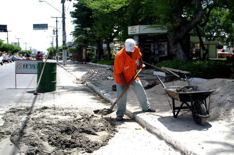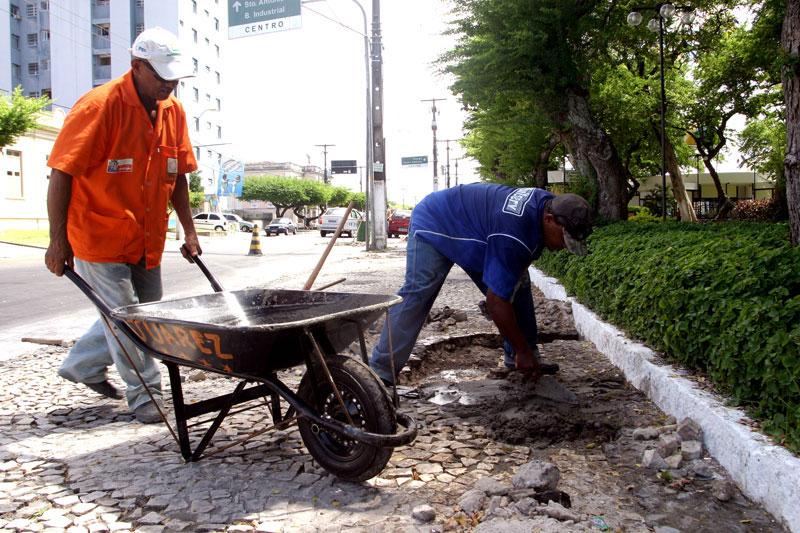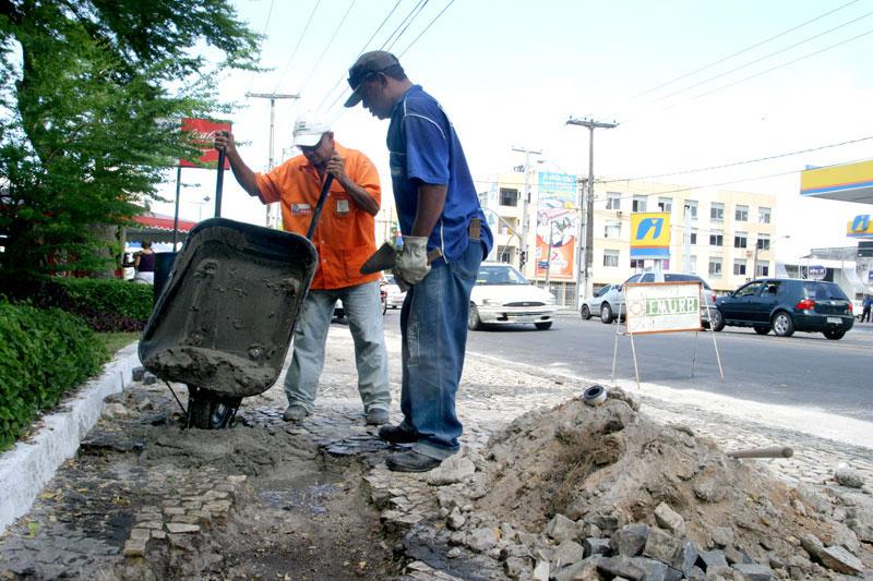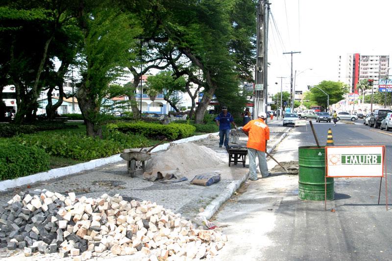 Em atendimento à determinação do prefeito Edvaldo Nogueira, os serviços de recuperação de pedras portuguesas nas praças da capital continuam sendo executados pela Empresa Municipal de Obras e Urbanização (Emurb). Desta vez, o trabalho está sendo realizado na Praça da Bandeira, após a conclusão das obras nas Praças Fausto Cardoso, Almirante Barroso e Camerino. De acordo com o presidente da Emurb, Valmor Bezerra, o trabalho é bastante cuidadoso, por isso leva um tempo maior que outros serviços, pois é preciso formar os diagramas já existentes. O local a ser trabalhado passa por várias etapas. Primeiro é varrido para que a área danificada possa ser cavada. Em seguida, é preenchido com cimento. Depois é que os técnicos colocam as pedras em seu devido lugar, de acordo com o desenho anterior, explica. O presidente informa ainda que próximo ao local da recuperação das pedras portuguesas estão sendo executados os serviços de recuperação asfáltica na rua Boquim. O trabalho acontece em uma das 23 ruas e 3 avenidas do Centro da Capital que serão recuperadas, comenta Valmor Bezerra. Segundo ele, em apenas 5 anos foram recapeados 322 km de vias públicas. Para a estudante Karla Tatiana dos Santos, as pedras soltam porque a população não colabora com a preservação do local. Todos os dias passam centenas de pessoas por aqui, sei bem disso porque esse é meu caminho de ida e volta para o colégio. Já vi gente cair, outras engancharem os saltos, mas nem isso cria consciência em preservar o patrimônio público, explica a estudante. Ela acrescenta ainda que antes as pessoas estacionavam os carros na praça, quando não tinha outro lugar para estacionar. Isso dificultava inclusive a passagem, tínhamos que passar pela rua ou disputar lugar com os carros estacionados, comenta Karla Tatiana. Para combater essas irregularidades a Superintendência Municipal de Transporte e Trânsito vem intensificando o trabalho de fiscalização nas calçadas de Aracaju.
