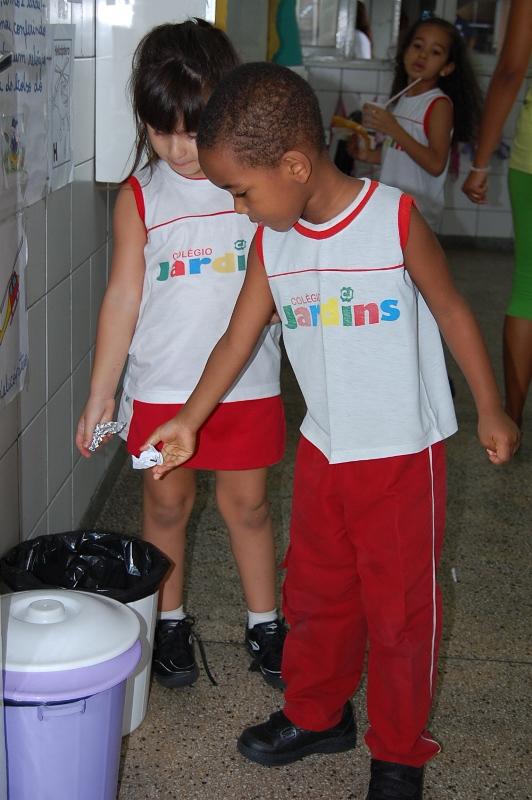 E como conhecimento não é feito só de teoria, os alunos do Colégio Jardins põem em prática o que aprendem dentro da sala de aula. "Os alunos adoraram a nova prática de separar o lixo seco e o úmido, eles fazem questão de levantar do seu lugar e jogar no lixo específico o resíduo do que consumiram. Com certeza eles levam estes ensinamentos para o seu ambiente familiar", acrescentou Wirlane Santos, satisfeita.