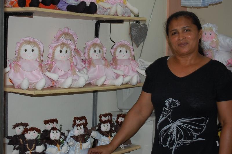 Já Juraci é especialista na arte do patchwork e em bonecas de pano. De acordo com a artesã, são muitas as encomendas de lembrancinhas para eventos e festas para crianças. "Os pedidos dos meus produtos são tantos que também os faço enquanto estou no Chica Chaves", explica Juraci.