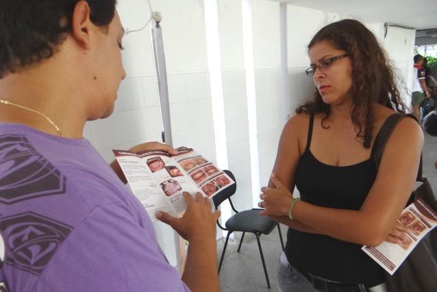 Prevenção ao câncer de boca e orientações sobre como fazer o autoexame da boca para diagnosticar a enfermidade são destaques durante a III Semana de Prevenção de Câncer de Boca. Nesta quarta-feira, 24, um estande foi montado no corredor do Centro de Especialidades Medicas (Cemar) do bairro Siqueira Campos. A atividade educativa promovida pela Secretaria Municipal de Saúde (SMS) convidou usuários do serviço a sanar dúvidas e aprender mais sobre câncer de boca.