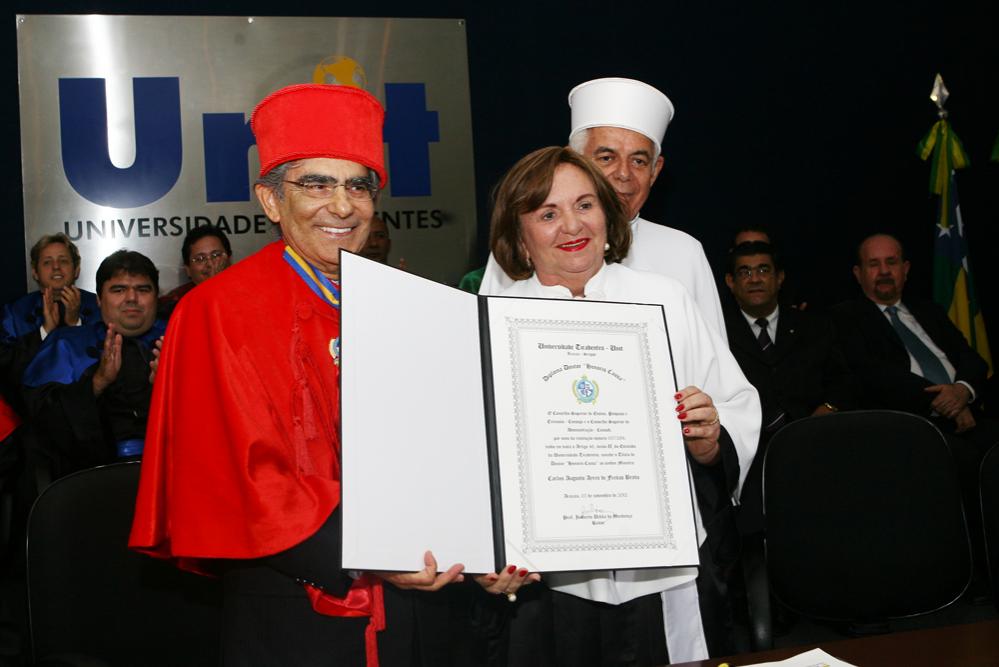 Na tarde da última segunda-feira, 5, o ministro presidente do Supremo Tribunal Federal, Carlos Augusto Ayres de Freitas Britto, recebeu da Universidade Tiradentes (Unit), o título de Doutor Honoris Causa. Homenageado por sua visão humanista, ética e pela dedicação do sergipano ao cenário jurídico nacional, Britto é o primeiro a receber o título da instituição que completou, em 2012, 50 anos de atividade.