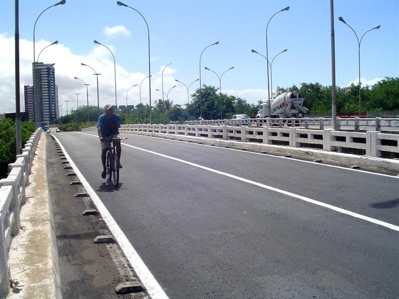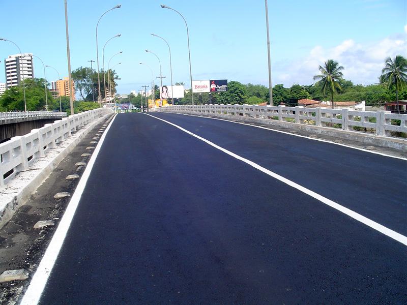A Prefeitura de Aracaju executa mais duas importantes intervenções urbanísticas, com o recapeamento asfáltico de duas pontes da cidade. Receberam uma nova pavimentação a ponte da avenida Beira Mar sobre o rio Poxim, que liga os bairros Ignácio Barbosa e Farolândia, e a ponte da avenida Tancredo Neves, nas imediações do Detran. O serviço foi executado pela Empresa Municipal de Obras e Urbanização (Emurb) e já oferece mais conforto e segurança para os condutores de veículos e usuários do sistema de transporte público. Nas duas obras as equipes da Emurb utilizaram a técnica da fresagem, que consiste na retirada de antigas camadas de asfalto para a aplicação da nova pavimentação. Fizemos a retirada de todo o antigo asfalto e colocamos uma nova camada asfáltica de cinco centímetros em toda a sua extensão, informa o presidente da Emurb, engenheiro Valmor Barbosa Bezerra. A retirada do asfalto desgastado, além de obedecer às especificações técnicas do projeto da ponte, possibilita a colocação de um pavimento mais uniforme e seguro, com a qualidade que tem caracterizado todos os serviços executados pela Emurb. Morador do bairro José Conrado de Araújo, Robson Dias dos Anjos disse que trabalha como segurança em um condomínio na Atalaia e que todos os dias passa pela ponte sobre o rio Poxim. A gente que utiliza a bicicleta como meio de transporte sente logo o benefício do melhoramento da pista. Agora que a Prefeitura fez o novo recapeamento asfáltico, só tenho que agradecer ao prefeito Edvaldo Nogueira por estar melhorando as pistas de Aracaju, dando maior segurança ao trabalhador, comenta. Apesar dos serviços terem sido executados em vias de grande fluxo de veículos, o bom planejamento na execução das obras eliminou qualquer tipo de transtorno para a população. A fresagem das vias foi realizada no período noturno e as equipes de pavimentação aplicaram a nova camada asfáltica interditando apenas um lado de cada pista, enquanto o serviço era realizado. A ponte da avenida Beira Mar tem uma extensão de 170 m em cada vão e a da avenida Tancredo Neves possui 210 m.