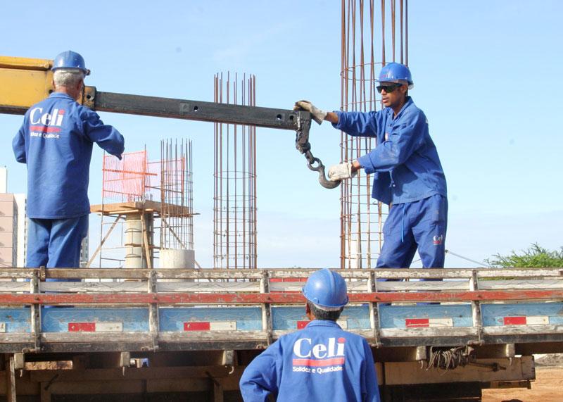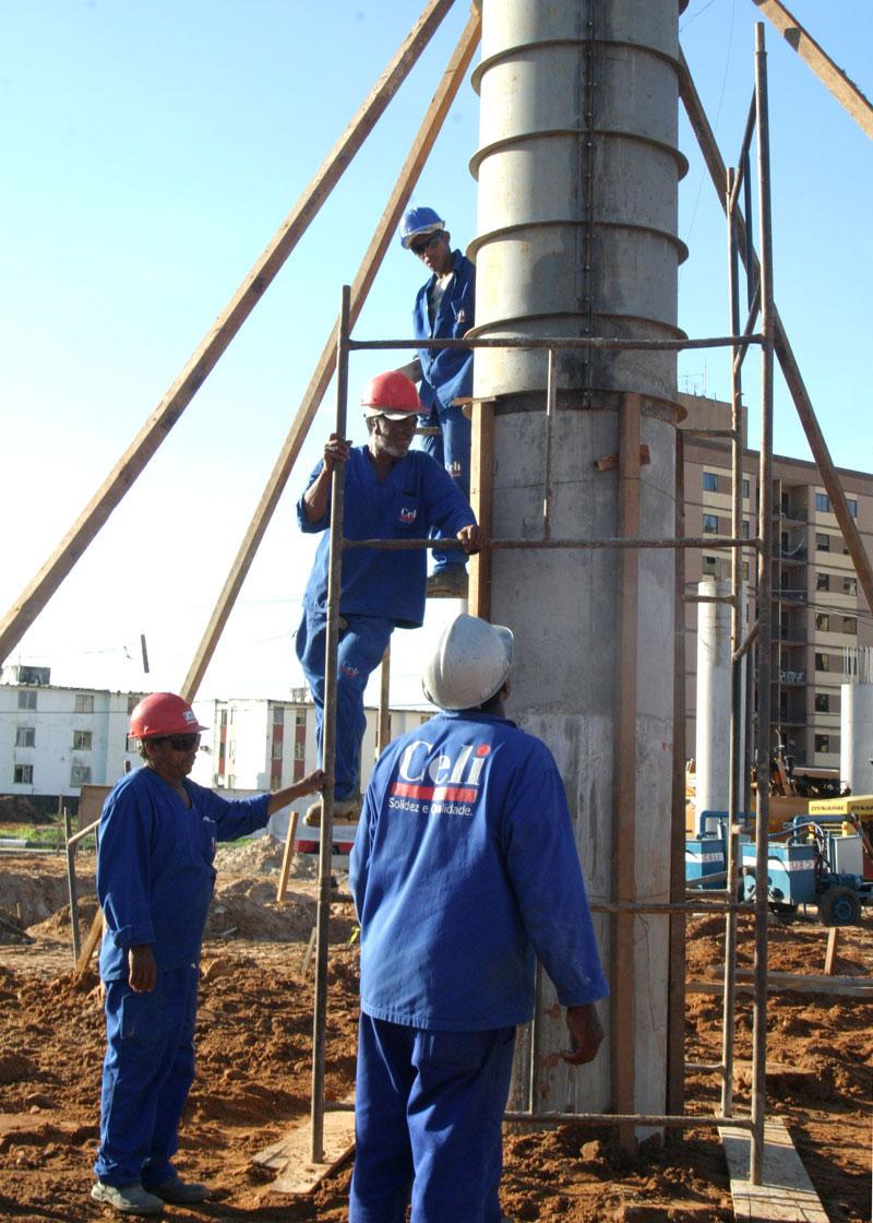 Seguindo o ritmo planejado, a atual fase da obra do viaduto do Distrito Industrial de Aracaju (DIA) tem como prioridade a elevação dos pilares de sustentação. A previsão é que até o final do mês de junho todos os pilares estejam totalmente concluídos, prontos para receber a meso e a superestrutura da construção. Estamos em um ritmo bastante acelerado na execução dos pilares, que já estão mais visíveis. Também estamos fazendo alguns blocos; a ênfase é velocidade na execução dos pilares. Em princípio, as chuvas não estão atrapalhando o cronograma da construtora, destacou o engenheiro da Empresa Municipal de Obras e Urbanização (Emurb), José Henrique Rodrigues. O engenheiro explica que a atual fase da obra compreende basicamente a execução de blocos e pilares, ou seja, a base e a sustentação das pistas de rolamento de veículos. Uma das fases da execução atual compreende no ´arrasamento´ das estacas, ou seja, a preparação para a execução de dois blocos. Em outras palavras, é propositalmente destruída uma parte não utilizável da concretagem, que é quebrada para fazer o bloco. Estamos fazendo também as formas de cinco blocos, que são aquelas estruturas que vão conter o concreto e podem ser feitas de tijolos ou de madeira. Essas daqui são mistas e, consequentemente, feitas as formas, entramos com as ferragens, contou. A montagem das armaduras de ferro também está sendo efetuada em outros dois diferentes blocos, mostrando o avanço dos trabalhos no canteiro. Ainda de acordo com Rodrigues, dando seqüência à obra, um bloco já pronto está sendo reaterrado. Além disso, está sendo realizada a primeira parte da concretagem de três outros blocos, na primeira etapa da forma, ou seja nos seus primeiros 2 metros. Como são alturas muito grandes, a concretagem é feita de 2 em 2 metros, até o pilar ficar pronto, diferentemente do bloco, que é feito de uma só vez, informou o engenheiro. Ainda dentro dos serviços previsto na obra, está sendo concluída a construção de uma cerca em volta de todo o perímetro do terreno da Codise. A cerca é de alvenaria e moirões de concreto pré-moldado. Acredito que na próxima semana já esteja totalmente concluído. Também estamos executando a sub-base da alça de nível, que é a pista de acesso, ao lado do terreno, para posteriormente preparar a base e a pavimentação asfáltica, disse o engenheiro. Além desses serviços, uma outra parte importante é a construção do bloco de encontro, onde as pistas elevadas vão alcançar o solo. Essa etapa atualmente está recebendo a armação das ferragens, fase anterior à colocação das formas para concretagem. Lençol freático A realização das fundações da obra, para a construção dos blocos, é feita a partir de escavações profundas, chegando a mais de 2 metros de profundidade. Isso torna necessário o rebaixamento do nível do lençol freático para a execução de mais dois blocos. Quando escavamos, o nível de água aparece, o que impede a concretagem. Para que esse serviço seja realizado é necessária a utilização desse recurso, através de bombas de rebaixamento, explicou. O engenheiro José Henrique Rodrigues ressalta que todos esses diferentes serviços são realizados consecutivamente, ou seja, toda a obra está sendo desenvolvida em uma seqüência única. Trânsito e segurança Há 18 auxiliares de tráfego trabalhando no local, especificamente para fazer a orientação no entorno da obra, para diminuir os transtornos causados aos cidadãos. Com esses auxiliares, chegamos ao número de 153 funcionários no canteiro, informou Rodrigues. Outra medida de segurança tomada pela Prefeitura para isolar a área foi cercar todo o canteiro com placas de Zinco, que são mais duráveis e resistentes que as de madeirite.
