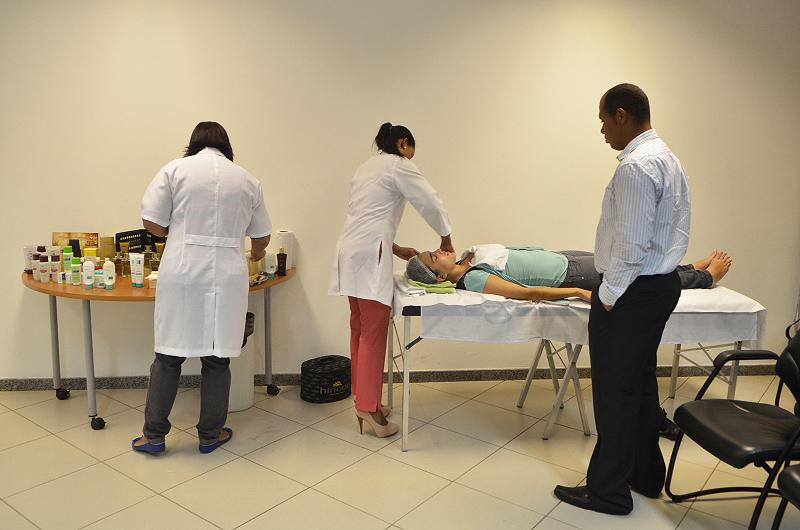 Ao mesmo tempo em que os alunos/estagiários do curso de massoterapia da Fundat, aprimoraram a prática de massagens, os servidores e funcionários desfrutaram dos exercícios de massoterapia. A servidora Vanda Maria aprovou a iniciativa da PMA em proporcionar atividades de relaxamento aos funcionários.