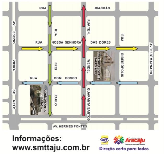 As ruas Dom Bosco, Frei Paulo, Nossa Senhora das Dores e Tenente Wendel Quaranta deixarão de ser mão dupla e passarão a ter sentido único. Agora o sentido da rua Frei Paulo será bairro Suíssa /avenida Hermes Fontes, o da rua Tenente Wendel Quaranta será Hermes Fontes/bairro Suíssa. O condutor que vem da avenida Desembargador Maynard poderá entrar na rua Dom Bosco e seguir no sentido da avenida Edézio Vieira de Melo ( avenida Explosão), já a rua Nossa Senhora das Dores terá o sentido oposto Edézio Vieira de Melo (avenida Explosão)/Desembargador Maynard.