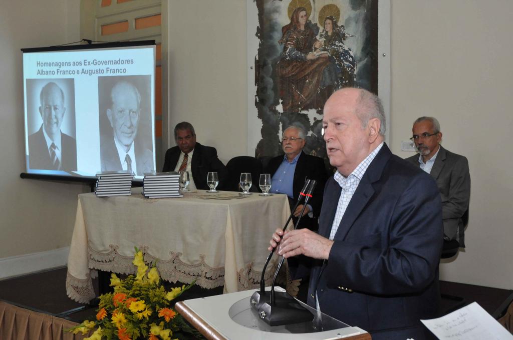 Muito emocionado, o ex-governador Albano Franco agradeceu a presença de todos os que foram participar da homenagem. “Estou feliz, emocionado, gratificado e honrado. Também aqui hoje está Augusto Franco, meu pai, meu amigo, meu exemplo, minha referência e meu modelo. Um homem cuja vida foi dedicada ao trabalho”, disse Albano, agradecendo aos palestrantes por terem explanado um pouco das realizações de ambos os governadores.