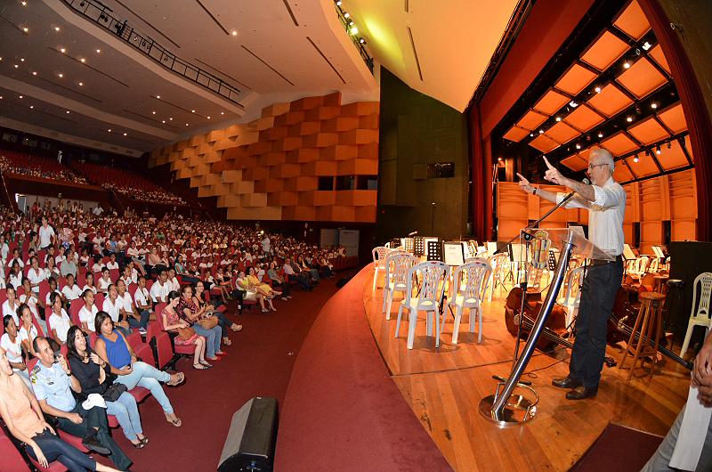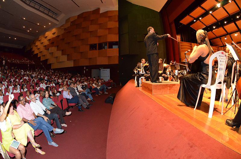 O evento histórico reuniu centenas de alunos e professores da rede municipal que foram conferir de perto a apresentação realizada no Teatro Tobias Barreto. Sob a regência do maestro Ion Bressan, coordenador das atividades, os alunos emocionaram os presentes executando canções como “Piratas do Caribe”, “Feira de Mangaio” e “Jingle Bells”.