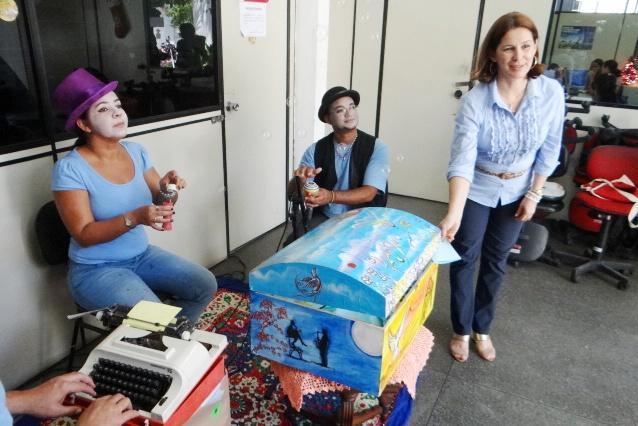 Artistas maquiados promoveram uma cena curiosa: reunidos ao redor de um grande baú, os atores tocavam uma caixinha de música, redigiam um documento misterioso e sopravam bolhinhas de sabão pelo ambiente. Do convite, cada servidor pôde escrever uma carta com um pedido da realização de um sonho em seguida deposita-lo no “Baú dos Sonhos”. Em troca daquele sonho, os trabalhadores receberam um outro tipo de presente: o sonho de padaria, o tradicional pãozinho doce e açucarado.