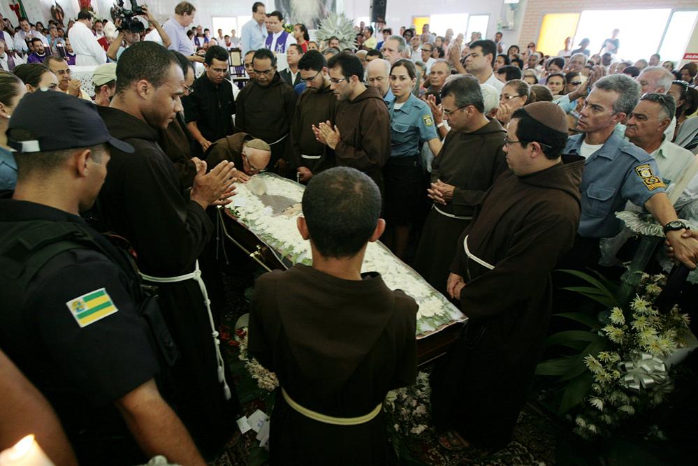 Após celebração eucarística, o corpo do Frei foi levado pelos frades capuchinhos em cortejo seguido pelos fiés até o mausoléu da igreja São Judas Tadeu, onde o corpo será enterrado.