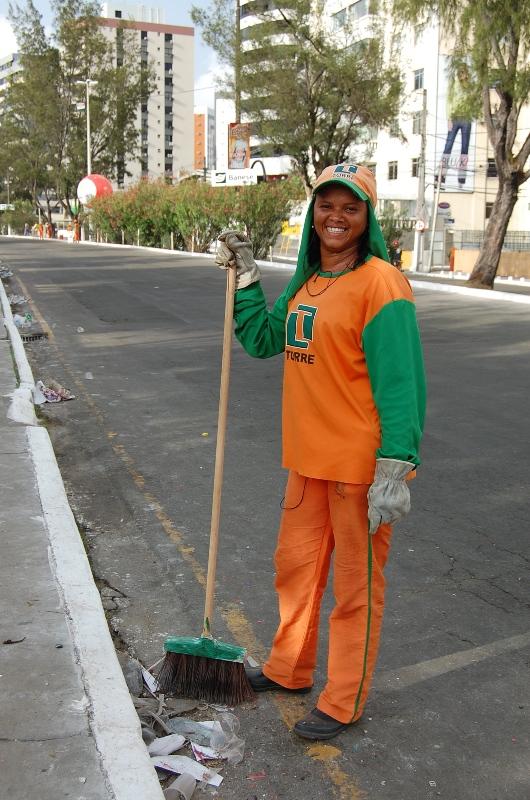 Exibindo carisma a agente de limpeza Maria Edna falou da importância do serviço e a participação da comunidade para a conservação. "Nosso serviço é essencial para a cidade e, por isso, me orgulho de fazer parte desta atividade. O que a gente espera é que a população tenha consciência e evite após o serviço de limpeza jogar lixo em qualquer lugar", disse.