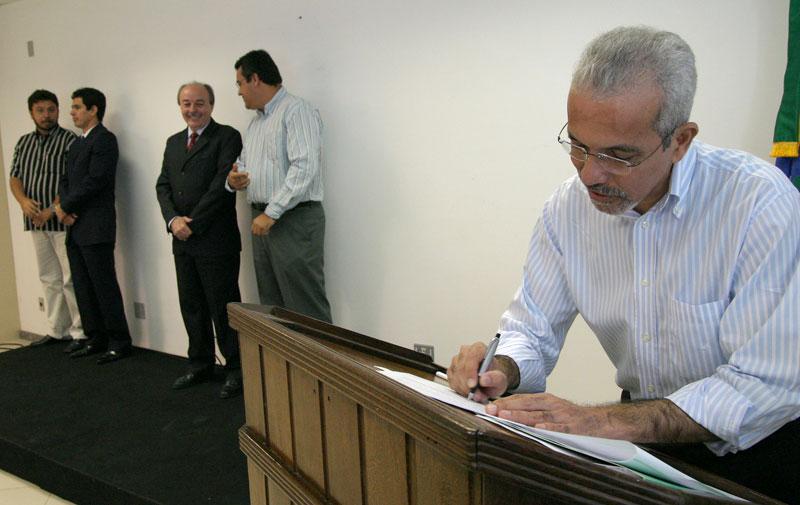 A Prefeitura Municipal de Aracaju e o Banese firmaram ontem, segunda-feira, uma importante parceria que vai resultar na recuperação do antigo farol, localizado no bairro Farolândia. O documento que formaliza o convênio foi assinado pelo presidente do banco, João Andrade, e pelo prefeito Edvaldo Nogueira, que assinou também a autorização da licitação para a realização dos serviços. Serão investidos R$ 965 mil na obra de recuperação, cuja previsão para conclusão é de 180 dias. O dinheiro é proveniente do Governo do Estado, através do Banese. Os recursos já estão assegurados e assim que a licitação for feita, faremos o repasse. Como contrapartida, a Prefeitura vai permitir que o banco instale um caixa automático no local. Também vamos fazer a manutenção das áreas verdes, para divulgar nossa marca, disse João Andrade. O farol foi inaugurado em 1888 e desativado em 1991. Em 1995, ele foi tombado, fato que suscitou movimentos, principalmente da classe estudantil, em prol da revitalização de sua estrutura. A vontade de recuperar o farol sempre existiu, mas antes não havia entendimento por parte do Governo e da Prefeitura. Só agora isso está sendo possível. Sozinha, a Prefeitura não poderia realizar uma obra como essa, que custa quase R$ 1 milhão, lembrou o prefeito Edvaldo Nogueira, agradecendo a parceria do Banese. Ele disse ainda que a revitalização do farol é fundamental para a preservação da história de Sergipe e de Aracaju. O farol foi fundamental para o progresso da nossa cidade. Sem ele, Aracaju não seria o que é hoje. Ele iluminou a chegada e saída dos navios de levavam e traziam cana-de-açúcar e desenvolvimento, falou, ao recordar um pouco da história da fundação de Aracaju, criada especialmente para ser sede da província e permitir o escoamento marítimo da produção agrícola do Estado. Etapas De acordo com o presidente da Empresa Municipal de Obras e Urbanismo (Emurb), Valmor Barbosa, o projeto de recuperação do farol já está pronto. Por causa da dificuldade do trabalho de revitalização da estrutura metálica, o projeto teve que ser feito em Salvador, porque aqui nenhuma empresa se habilitou, explicou Valmor. Depois de recuperado, o farol terá estrutura idêntica à original e ganhará uma nova lanterna, que será trazida da Bahia, com o apoio da Marinha do Brasil. A recuperação é a primeira etapa das obras que serão realizadas no farol. A segunda, que será custeada pela Prefeitura, é a urbanização da praça onde o farol está localizado. Orçada em R$ 450 mil e já licitada, a obra será iniciada depois de cerca de 60% da revitalização da estrutura metálica do farol, já que o fluxo de trabalhadores e máquinas atrapalharia os serviços. O entorno do farol será dotado de canteiros, lago, ponte e árvores, entre outros elementos urbanísticos. Tenho certeza que vai ficar muito bonito e que será um novo ponto de atração de turistas e aracajuanos, disse Edvaldo Nogueira. Pacto A assinatura do convênio ocorrida hoje é a concretização de um protocolo de intenções assinado em março, mês de aniversário de Aracaju, pelo prefeito Edvaldo Nogueira e pelo governador Marcelo Déda. O compromisso assumido por ambas as partes agradou os estudantes da capital, que em novembro do ano passado realizaram um ato público pela revitalização do farol, que nunca passou por nenhuma reforma. Tivemos uma audiência com o prefeito e ele disse que iria atender nossa reivindicação. Hoje ele honra o compromisso. É uma felicidade muito grande não só para o DCE e para o Centro Acadêmico de Arquitetura da Unit, mas também para toda a sociedade sergipana, falou o vice-presidente do Diretório Central dos Estudantes (DCE) da Universidade Tiradentes (Unit), Maurício Soares, no dia da assinatura do protocolo de intenções. Veja matéria publicada no G1 - Site de Notícias da Globo: Farol de Aracaju será restaurado