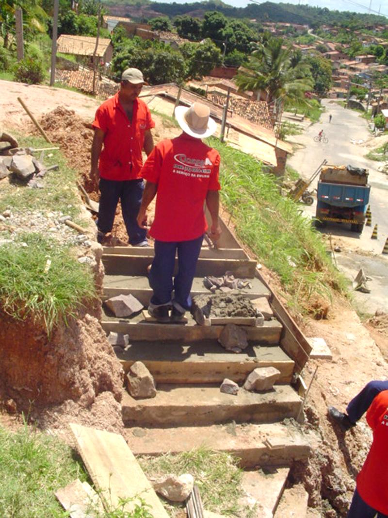 Acessibilidade. Um conceito importante para as obras que vêm sendo executadas pela Prefeitura de Aracaju, através da Empresa Municipal de Obras e Urbanização (Emurb). Diariamente, ações da empresa beneficiam os cidadãos dos diversos bairros da capital. Esta semana, por exemplo, a Emurb iniciou os serviços de construção de escada na avenida `A´, bairro Cidade Nova, zona Norte de Aracaju. A obra, fruto de solicitações da própria comunidade, corresponde à iniciativa da administração municipal de promover segurança e acessibilidade aos pedestres da cidade. No local, o órgão do município constrói uma escada em concreto que viabilizará o tráfego das pessoas que circulam pelo entorno da avenida. A empresa pretende, com a obra, proporcionar mais uma forma de acesso dos moradores da região à importante avenida que corta o bairro Cidade Nova. Com a conclusão dos serviços, os cidadãos poderão utilizar uma forma segura de passagem entre o morro e a via. Trabalhamos diariamente com esses tipos de solicitações. Os moradores do bairro se viam em dificuldades de acesso, devido, principalmente, aos períodos chuvosos, quando a composição do solo da região ficava instável. A escada solucionará esse problema em definitivo. Uma obra que demonstra o enfoque de valorização dos meios de acessibilidade como uma maneira de proteger a vida e garantir a tranqüilidade de acesso, explica o engenheiro Valmor Barbosa Bezerra, presidente da Emurb.