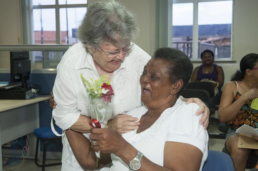 Flores, sorrisos e abraços. Assim foram recebidas as primeiras usuárias dos serviços socioassistenciais que chegaram nesta manhã à Central de Atendimento da Secretaria Municipal da Família e da Assistência Social. "Estou emocionada. É muito bom ser recebida dessa forma, principalmente quando é pela secretária Selma Mesquita, que demonstrou que somos bem vindas aqui", declarou Maria Aparecida dos Santos, moradora do São Conrado, que foi à Central para fazer o recadastramento do Bolsa Família.