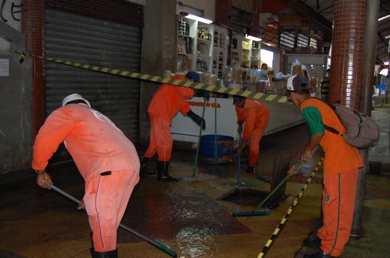 Desde o início de março as atividades de reestruturação do Mercado Municipal Albano Franco estão intensificadas. Na última segunda-feira, 11, mais uma vez ocorreu a limpeza do setor de pescados do mercado com foco em higienização de bancas, chão e paredes. Para esta ação a Empresa Municipal de Serviços Urbanos (Emsurb) contou com uma equipe de 18 agentes, que realizou a limpeza também no setor de carnes.