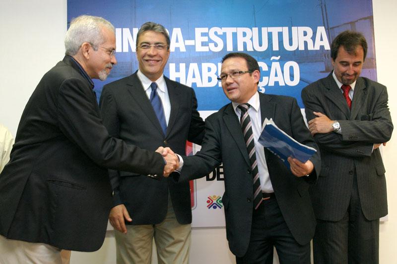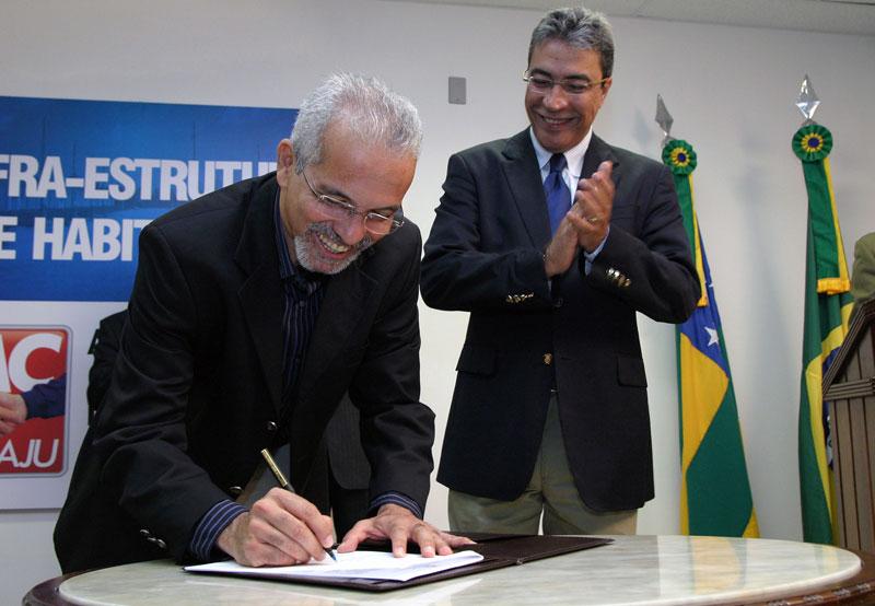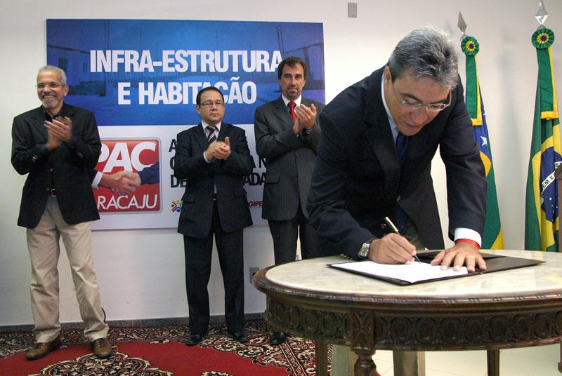 O repasse de mais de R$ 60 milhões à Prefeitura Municipal de Aracaju para a realização de obras do Programa de Aceleração do Crescimento (PAC) em bairros carentes da capital foi formalizado na manhã de hoje, segunda-feira, durante solenidade realizada no auditório do Centro Administrativo Prefeito Aloísio Campos. Na ocasião, o prefeito Edvaldo Nogueira, o governador Marcelo Déda e o superintendente nacional da Caixa Econômica Federal (CEF), Nelson Antônio de Souza, assinaram contratos para a liberação dos recursos. Do total repassado, R$ 50,2 milhões são provenientes do Governo Federal e R$ 10,2 milhões do Governo do Estado. O dinheiro será destinado às áreas de infra-estrutura e habitação. No Coqueiral, onde serão investidos R$ 31,6 milhões, as melhorias incluem a construção de 600 casas, estruturação dos sistemas de esgotamento sanitário e distribuição de água, drenagem pluvial, pavimentação e recuperação de vias. No bairro Santa Maria, a Prefeitura vai construir 594 unidades habitacionais e realizar obras de infra-estrutura no Bloco II e conjunto Senhor do Bonfim, beneficiando mais de 35 mil habitantes. Ao todo, serão investidos R$ 30,8 milhões. Todos os recursos do PAC que conseguimos junto ao Governo Federal vão ser aplicados para melhorar a vida dos moradores das duas localidades que considero mais preocupantes da nossa capital: o Santa Maria e o Coqueiral. São duas áreas que precisam da intervenção do poder público, afirmou Edvaldo Nogueira. Ele destacou que os investimentos só estão sendo possíveis porque há uma parceria entre o Governo Federal, o Governo do Estado e a Prefeitura Municipal. Nunca os Governos Federal e Estadual liberaram, de uma só vez, tantos recursos para a nossa capital, lembrou o prefeito. O governador Marcelo Déda também ressaltou a sinergia do poder público e a marca histórica de repasses para Aracaju. Isso que está acontecendo é algo inédito. Ao longo dos cinco anos em que fui prefeito de Aracaju, acessamos R$ 600 mil do Governo Estadual. Aqui, em um único ato, a administração estadual está repassando para a Prefeitura R$ 10 milhões em valores financeiros, apontou Déda. Para ele, com a ajuda do Estado e do Governo Federal, a Prefeitura de Aracaju está conseguindo dar continuidade ao projeto estratégico de governo anteriormente definido, que estabelece como áreas prioritárias os bairros Santa Maria e Coroa do Meio, e avançar com a abertura de novas frentes, a exemplo do Coqueiral. A administração municipal tem fôlego, projeto e apoio. É por isso que estamos vendo essa revolução de obras aqui. O mérito total desta ação é da administração Edvaldo Nogueira, pois foi esta equipe quem preparou todo o projeto, completou o governador. Aracaju está e vai continuar sendo bastante beneficiada pela forma como a coisa pública tem sido tratada. Esse é o maior motivo para que a Caixa esteja sempre presente aqui no Estado, fazendo com que as coisas aconteçam. Até o início de setembro, já tínhamos repassado R$ 1 bilhão para Sergipe e a previsão é que até o fim do ano esse valor alcance R$ 1,4 bilhão, disse o superintendente nacional da Caixa Econômica, Nelson Antônio de Souza. PAC O PAC foi lançado em Sergipe no dia 26 de julho, durante visita do presidente Lula à Aracaju. Na ocasião, foi anunciado um investimento de R$ 98,3 milhões somente na capital sergipana. Desse total, aproximadamente R$ 66 milhões são provenientes do Governo do Federal e repassados pela Caixa, R$ 20 milhões obtidos através de financiamento e R$ 12 milhões dos cofres municipais (R$ 2 milhões) e estaduais (R$ 10 milhões). No final de agosto, o prefeito Edvaldo Nogueira assinou a Ordem de Serviço para a construção de 404 casas no bairro Novo, próximo ao bairro Santa Maria, na zona de expansão da cidade. A obra, orçada em 12,8 milhões já liberados pelo Governo Federal -, é a primeira com recursos do PAC a ser iniciada no país. De acordo com o secretário municipal de Planejamento, Luciano Pimentel, as demais obras nos bairros Santa Maria e Coqueiral serão iniciadas ainda este ano. Com o repasse dos recursos formalizado hoje, a Emurb já está preparando os editais de licitação. Nossa expectativa é que ainda este mês estejamos lançando os editais para que possamos fazer a contratação das obras. Até o fim do ano teremos todas as ordens de serviço assinadas, adiantou o secretário. Presenças Participaram da solenidade secretários municipais e estaduais; o superintendente da Caixa em Sergipe, Gilberto Occhi; o presidente da Câmara de Vereadores, Sérgio Góes; a primeira-dama de Aracaju e presidente da Fundação Aperipê, Indira Amaral; o senador Antônio Carlos Valadares; o deputado estadual Armando Batalha, entre outras autoridades.