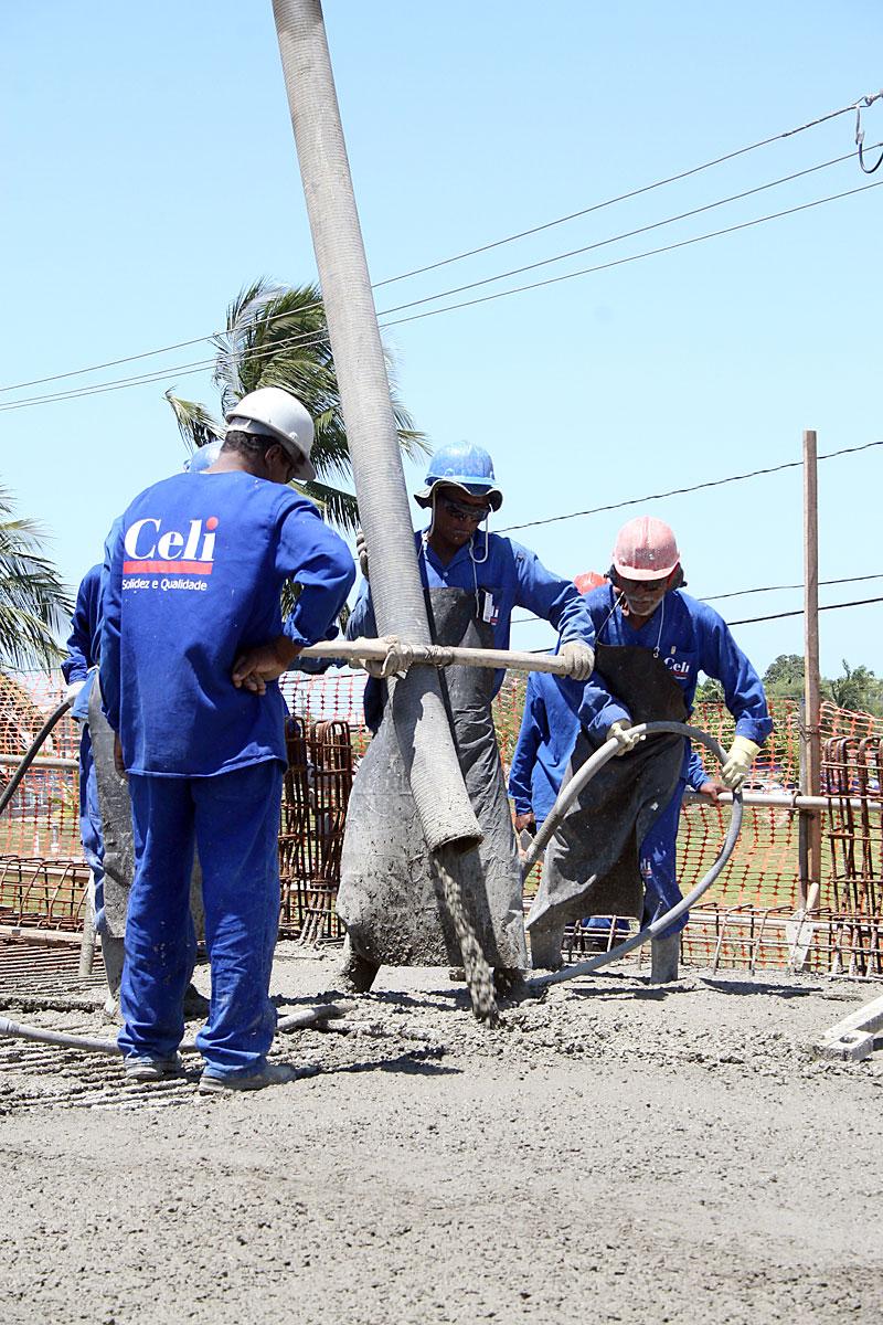 Não falta muito para que a maior e mais importante obra urbana dos últimos anos na capital sergipana esteja à disposição da população. Conforme dados da Empresa Municipal de Obras e Urbanização (Emurb), o viaduto do Distrito Industrial de Aracaju (DIA) já está 63% concluído. Nesta segunda e terça-feira, foi feita a concretagem de mais um trecho da pista principal. Dessa vez, estão sendo utilizados mais 416 metros cúbicos de concreto, quantidade necessária para concluir os 80 metros de extensão do trecho. Além da concretagem, os 210 operários envolvidos na construção do viaduto atuam simultaneamente em outras diversas frentes de trabalho. Sendo assim, as equipes vêm concluindo as ferragens da alça em frente ao supermercado Extra, o escoramento e fôrma da alça que fica próximo à Codise e o aterro da rampa que dará acesso ao viaduto pela avenida Tancredo Neves. Além de outros serviços como a construção dos guarda-corpos, que são os blocos de concreto que protegem as laterais do viaduto. Está previsto ainda para essa semana o começo da construção dos encaixes entre os módulos, que são partes da obra que ligarão alças e pista principal. Esta etapa será mais trabalhosa, uma vez que corresponde aos trechos de ligação entre tudo o que vem sendo feito. Conforme o presidente da Empresa Municipal de Obras e Urbanização (Emurb), Valmor Barbosa, o andamento das obras do viaduto do DIA está dentro do cronograma e segue sem maiores problemas. Ainda segundo Valmor, nas próximas semanas serão adotadas novas medidas para melhorar o tráfego de veículos na região. A principal delas será a terraplanagem ao lado da praça situada no local das obras. O objetivo é encaixar a mesma com a via para que até o dia 15 deste mês não seja mais necessário efetuar o desvio pelo conjunto Médice. Isso vai facilitar muito, porque quem vem pela avenida Contorno não precisará mais entrar na Adélia Franco e sair pelo Médice; o motorista já vai passar pelo terreno da Igreja, ressalta o presidente da Emurb.
