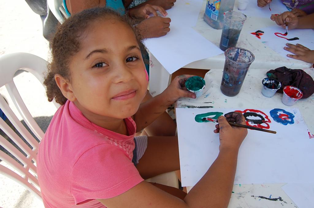 Vitória Iasmim Santos de Santana, de 5 anos, veio com a madrinha para o evento e não resistiu ficar na tenda para fazer pinturas e ganhar uma maquiagem. "Minha madrinha estava passando comigo, eu vi as crianças desenhando e decidi ficar. Gosto muito de pintar borboletas", contou a pequena moradora do bairro São Conrado.
