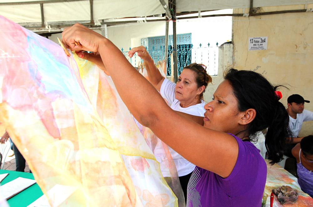 "Já fiz fuxico e não perdi tempo e procurei aprender como se faz a pintura em tecido. Estou gostando de tudo e se tiver outra edição destas no meu bairro, com certeza eu virei novamente", diz a moradora do São Conrado, que desde o período da manhã participa do evento.