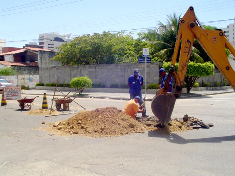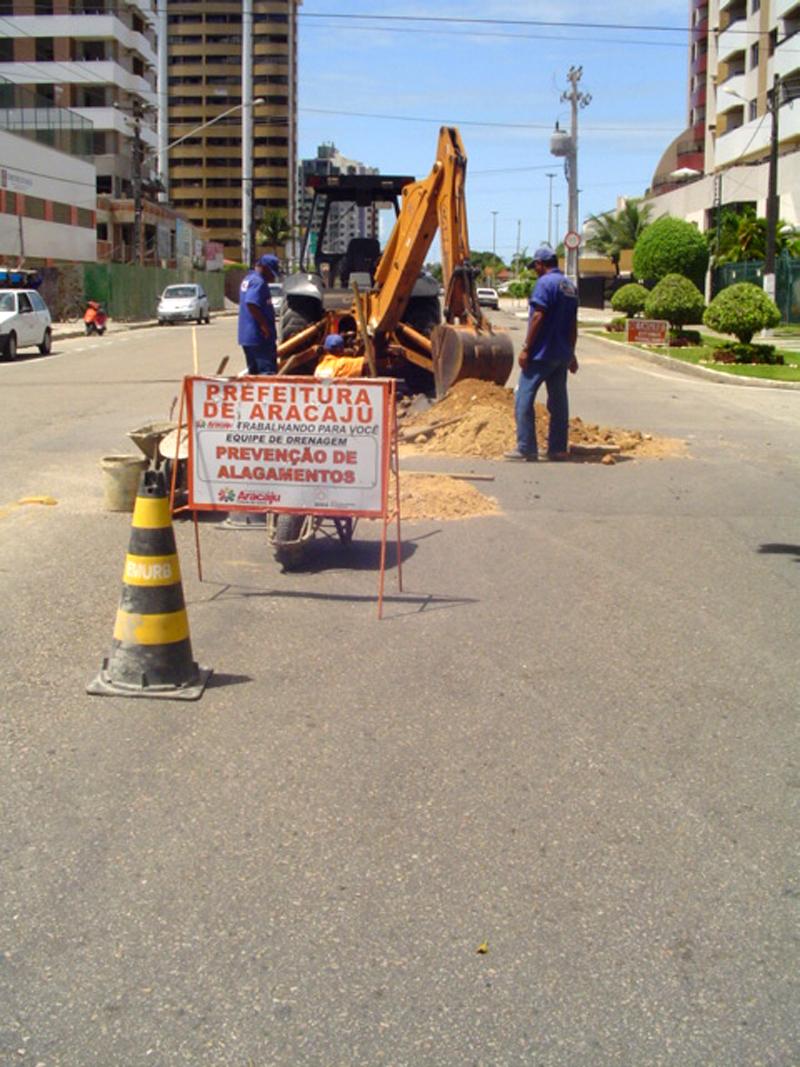 Por meio da Empresa Municipal de Obras e Urbanização (Emurb), a Prefeitura de Aracaju realiza diariamente serviços de manutenção em vários pontos da capital. Nos diversos bairros da cidade, equipes da Empresa chegam com maquinário específico para prevenir e solucionar problemas com os sistemas de rede de drenagem pluvial. Uma das últimas intervenções aconteceu no Loteamento Garcia, bairro Jardins, zona Sul de Aracaju. A Prefeitura havia detectado um problema no sistema de tubulações, responsável pela drenagem das águas das chuvas. O problema era resultado de fissuras nas manilhas que compõem a rede profunda da rua Jorge Amado. Se persistisse a situação, a estrutura do asfalto da via poderia se comprometer, devido à erosão do solo. Por isso, assim que foi diagnosticada a questão, o órgão municipal enviou uma equipe para prevenir transtornos à população que trafega todos os dias na região. De acordo com o engenheiro Valmor Barbosa Bezerra, presidente da Emurb, a Empresa trabalha com uma programação diária que traça o perfil dos serviços que são executados na cidade. As obras de manutenção de rede de drenagem, segundo Valmor, garantem a prevenção a transtornos maiores aos cidadãos aracajuanos. É muito importante estarmos com um olhar constante para o futuro da cidade. Aracaju cresce com velocidade acelerada e precisamos estar preparados para as mudanças que o desenvolvimento do perímetro urbano trará. A manutenção das redes de drenagem é, apenas, uma dessas ações. A Emurb trabalha para garantir um futuro com qualidade de vida para o seu povo, conclui Valmor.