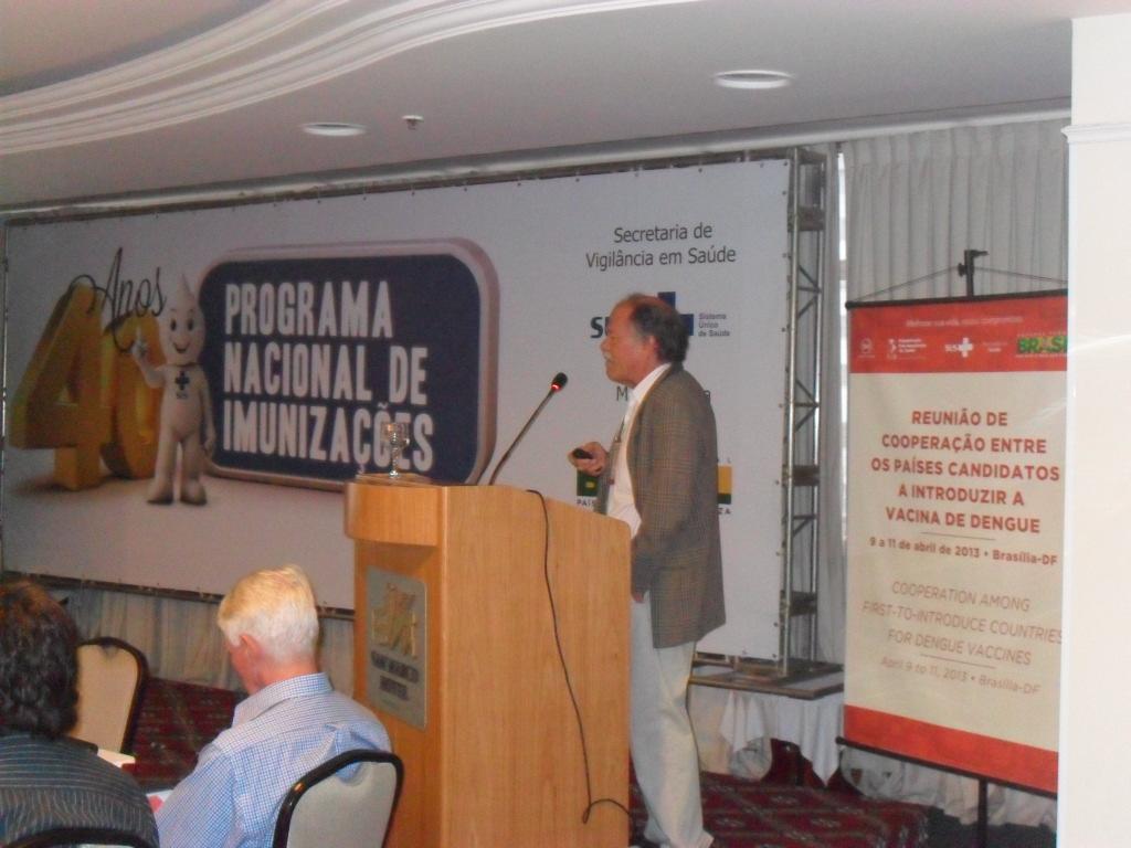 Também durante o evento, foi apresentado o status e o cronograma de desenvolvimento das vacinas contra dengue, enquanto que aos países coube apresentar dados epidemiológicos e pontos de reflexão a serem considerados na introdução desta vacina, que vem sendo estudada há 20 anos e poderá ser fabricada entre o final do ano passado e início de 2014. De acordo com Taíse, Brasil, México, Colômbia, Tailândia, Malásia, Indonésia e Filipinas são os sete primeiros países que se candidataram para a introdução da vacina contra dengue.