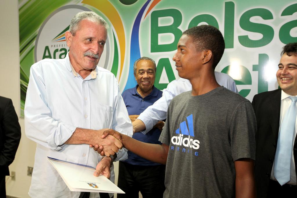 Uma cerimônia especial foi realizada na noite desta terça-feira, 16, no auditório do Centro Administrativo Prefeito Aloísio Campos. Em clima de festa, os 80 atletas contemplados com o benefício receberam do prefeito João Alves Filho os primeiros kits do Bolsa Atleta. A entrega foi organizada pela Secretaria de Juventude e Esporte (Sejesp).