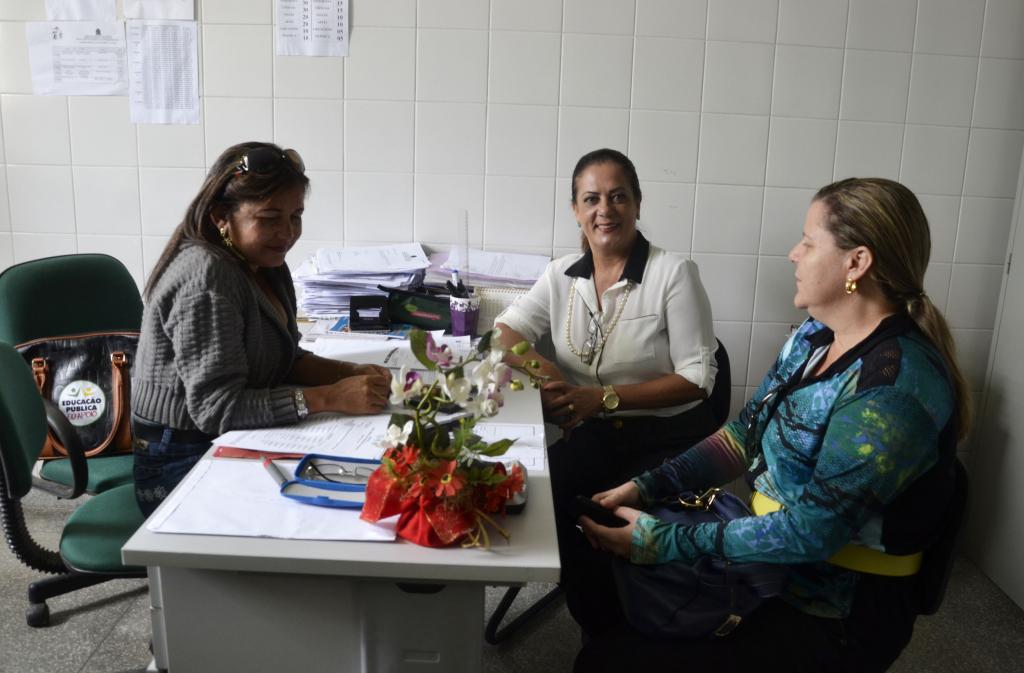 Márcia Valéria, a secretária de Defesa Social, Georlize Teles, e o diretor da Guarda Municipal de Aracaju, coronel Enilson Aragão, conversaram com a coordenadora da Emef, Magna Araujo, e garantiu apoio aos coordenadores, professores e alunos.