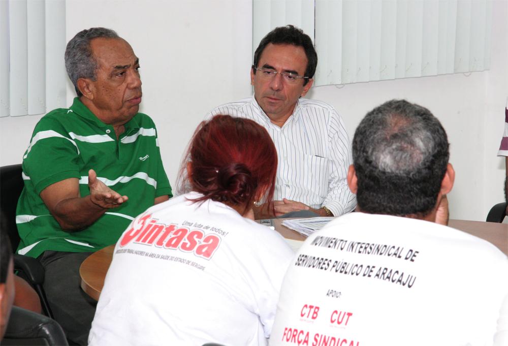 O prefeito João Alves Filho esteve na tarde desta sexta-feira, dia 03, no Centro Administrativo Prefeito Aloísio Campos reunido com o Movimento Intersindical, que é composto por representantes de 14 sindicatos dos servidores públicos municipais. Os sindicalistas marcaram audiência com o prefeito na semana passada e tiveram a solicitação atendida, começando assim uma mesa de negociação com a Administração Municipal.