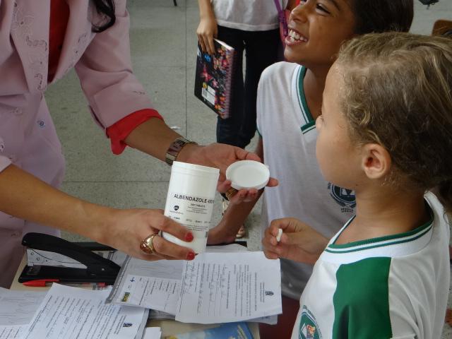 No bairro Coqueiral, os alunos que já apresentaram a autorização assinada pelos pais receberam doses do remédio Albendazol, que elimina parasitas comuns como lombriga e amarelão. A enfermeira Grazielle Dias supervisionou a atividade e destaca que mais de 200 alunos de escolas públicas da região já receberam a dose do remédio.