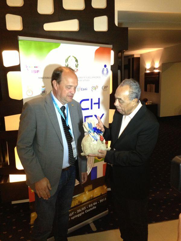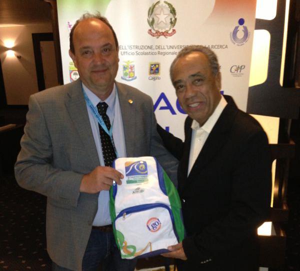 O prefeito João Alves Filho, presidindo a comitiva que representa Aracaju na Itália, entregou pessoalmente ao presidente da Federação Internacional de Esporte Escolar (International School Sport Federation - ISF), Andrea Delpin, os materiais de divulgação da cidade elaborados pela Prefeitura de Aracaju, através da Secretaria Municipal de Comunicação Social.