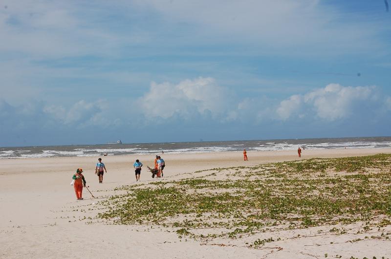 No início da manhã, um grupo de voluntários se deslocou para a areia da praia entre os trechos dos Arcos da Orla de Atalaia até o final da Passarela do Caranguejo recolhendo o lixo descartado irregularmente no local.