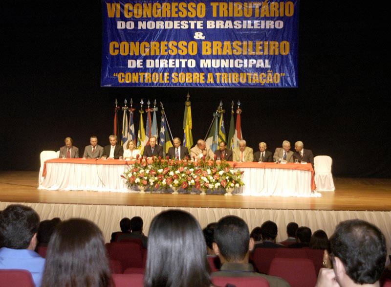 O secretário municipal de Finanças, Oliveira Júnior, participou na noite de ontem, 27, da abertura oficial do VI Congresso Tributário do Nordeste Brasileiro e Congresso Brasileiro de Direito Municipal. O evento, que está sendo realizado no Teatro Tobias Barreto até o dia 30, começou pela manhã com um debate mediado pelo secretário sobre a prática e a fiscalização do Imposto Sobre Serviços de Qualquer Natureza (ISSQN). Estes congressos são referência no Brasil para os estudiosos do direito tributário e é uma honra para Aracaju poder sediá-lo, disse Oliveira Júnior. Durante os três dias restantes dos congressos, os participantes vão discutir Imposto de Renda, o Processo Penal Tributário, o Imposto Sobre Circulação de Mercadorias e Prestação de Serviços (ICMS), planejamento tributário e outros temas. Grandes nomes do Direito nacional participaram da abertura e serão debatedores do evento como o presidente do Supremo Tribunal de Justiça (STJ), Raphael Monteiro; os ministros do STF Enrique Lewandovski e Carlos Veloso (aposentado e homenageado pelo congresso); além de professores doutores de universidades sergipanas, paulistas, paranaenses e mineiras. Participaram da solenidade de abertura do evento a presidente do Tribunal de Justiça de Sergipe, desembargadora Marilza Maynard, o patrono do evento e presidente da Construtora Celi, Luciano Barreto; o reitor da Universidade Tiradentes (Unit), Joubert Uchôa; os coordenadores gerais dos congressos Oyama Teles (presidente do Instituto Sergipano de Estudos Tributários - Iset) e o juiz José Anselmo Oliveira, dentre outras autoridades.