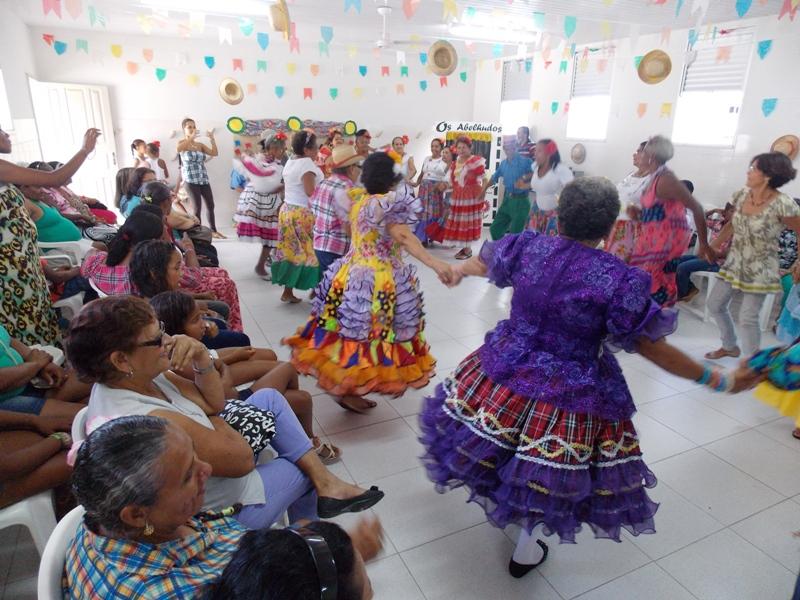 Com um texto cômico e educativo, o evento iniciou com um teatro de fantoches e seguiu com apresentações de grupos de dança. O grupo das ações da manhã e da tarde fizeram apresentações de forró, seguidos por uma performance de carimbó do grupo de idosas das Lavadeiras e uma dança country do grupo Projovem. As apresentações de dança se encerraram com uma quadrilha junina com idosos dos grupos das Lavadeiras e ‘Vida Nova’. No fim, um lanche tipicamente nordestino foi servido para todos os usuários e convidados presentes.