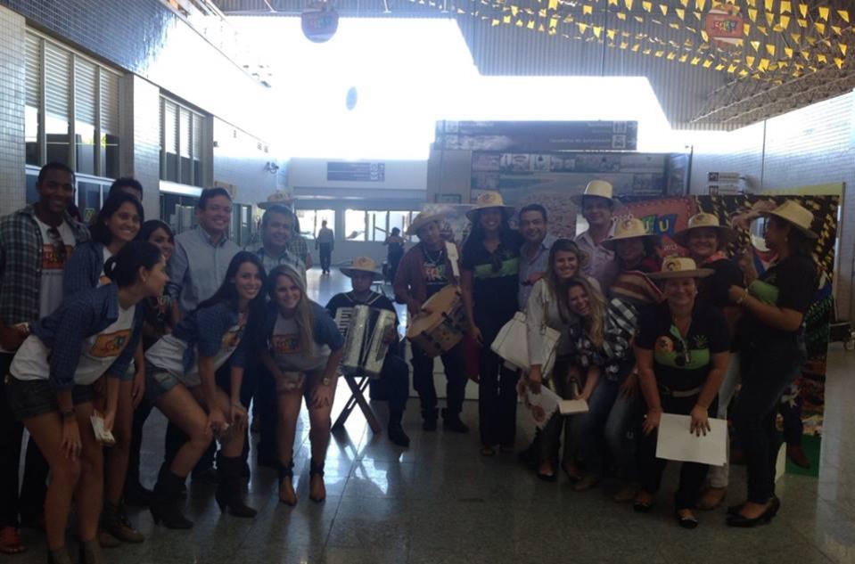 O terceiro dia de ações do Programa de Receptivo Turístico para o período junino da Secretaria Municipal da Indústria, Comércio e Turismo (Semict) teve um incremento a mais. A Secretaria de Turismo (Setur) somou-se à Semict e promoveram um verdadeiro arraial festivo no Aeroporto Internacional Santa Maria na tarde desta quarta-feira, dia 19.