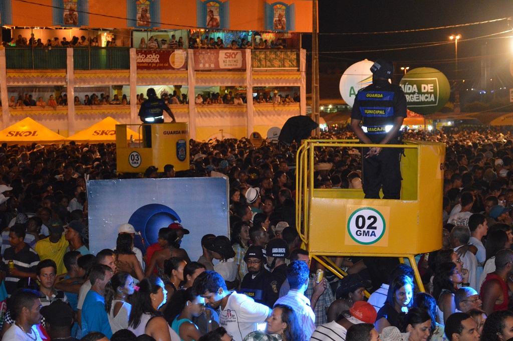 A segurança foi garantida já na chegada à festa, nos portões de acesso. O grupo de 150 guardas municipais (GMS) recém-empossados ficou responsável pela revista com detectores de metais, impedindo a entrada de pessoas armadas ou portando objetos que oferecessem risco à integridade física de quem curtia a festa. Além disso, coube ainda aos novos integrantes o fechamento dos portões que limitaram o circuito da evento.
